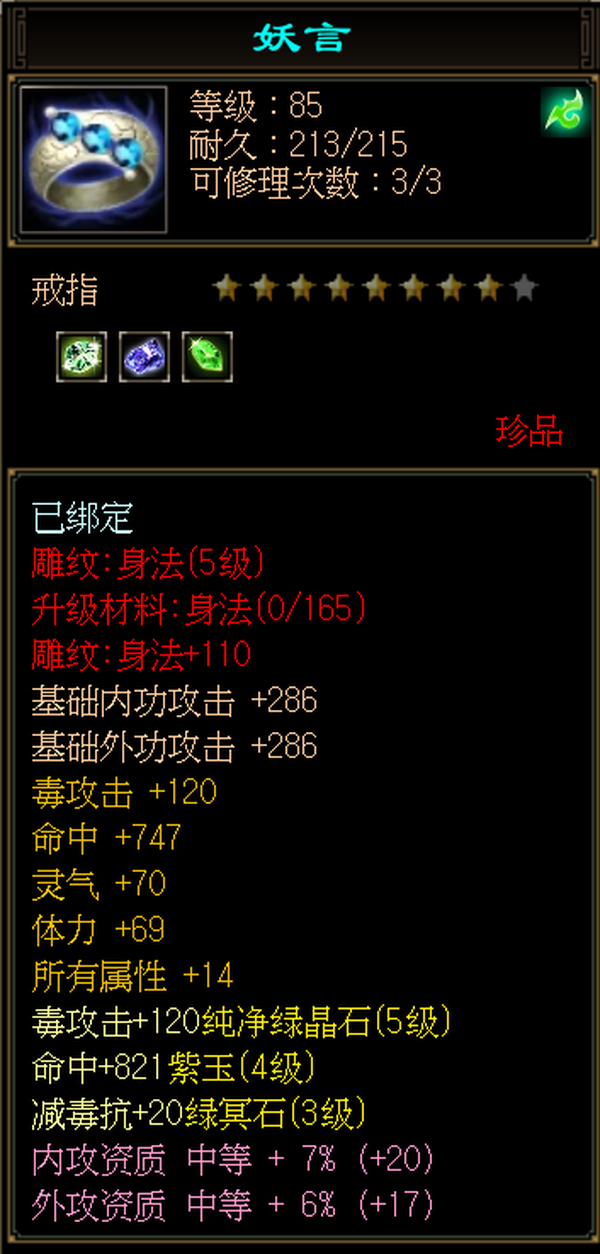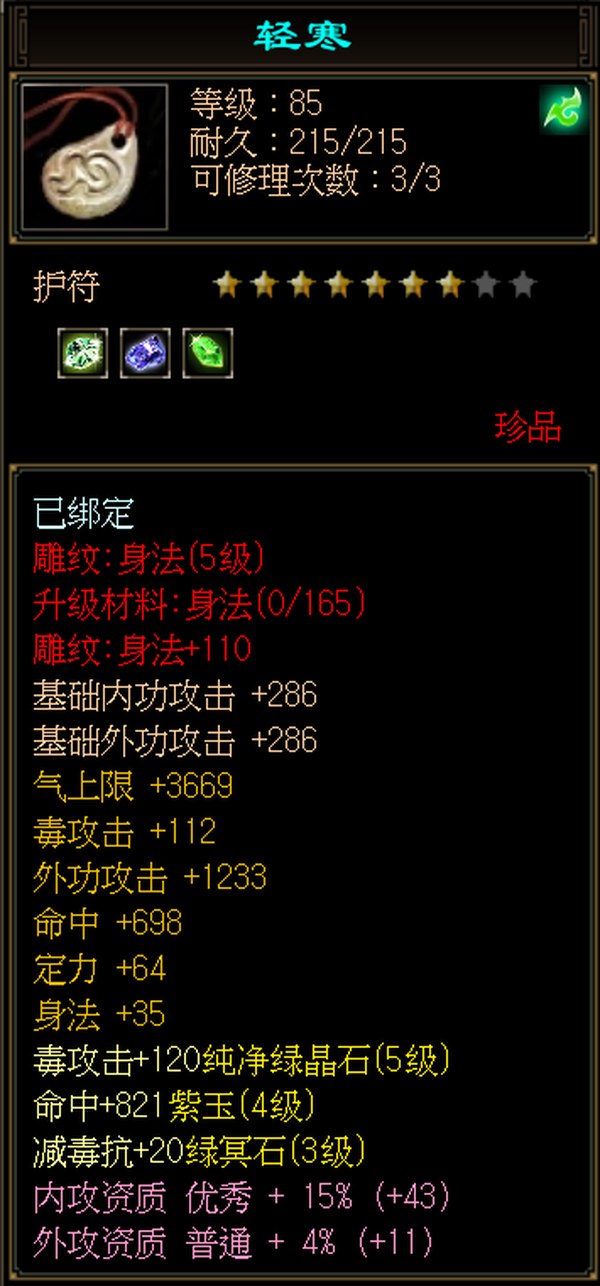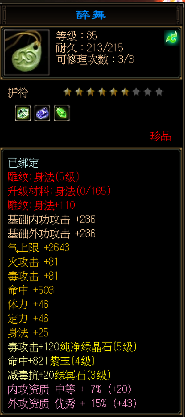 丐帮 | 等级:86 | 主属性:2310 | 副属性:427 | 男 | 主毒攻