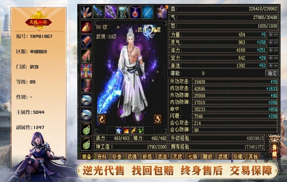 【TRP81967】 | 武当 | 等级:89 | 主属性:5044 | 副属性:1247 | 主冰攻 | VIP1 | 畅游账号
