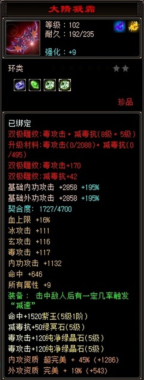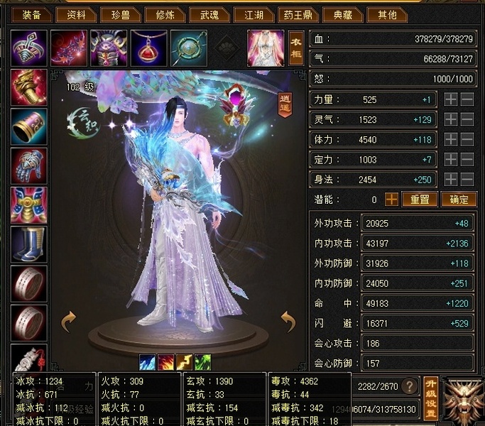 逍遥 | 等级:102 | 主属性:4362 | 副属性:2933 | 男 | 主毒攻