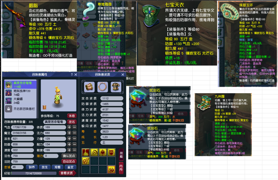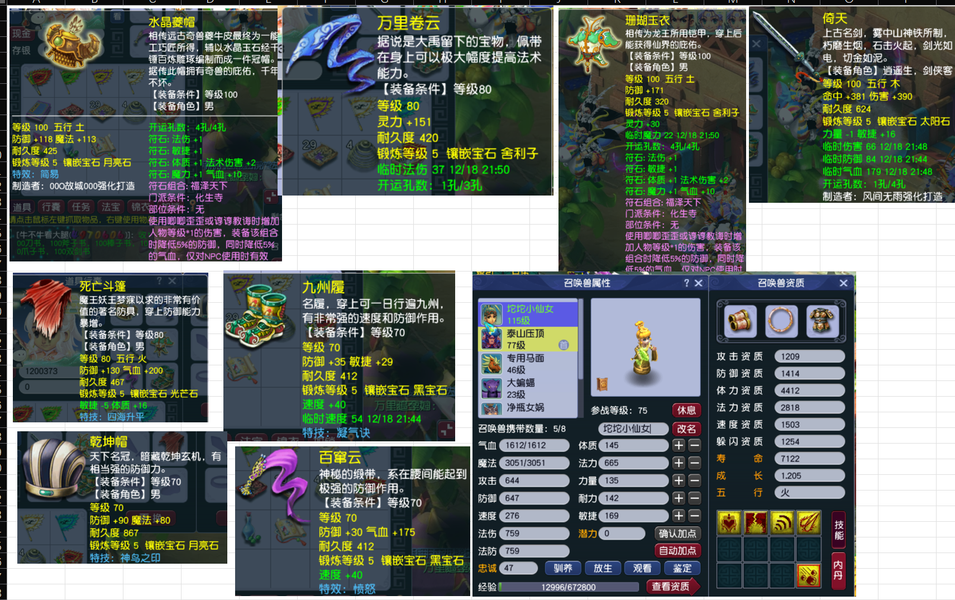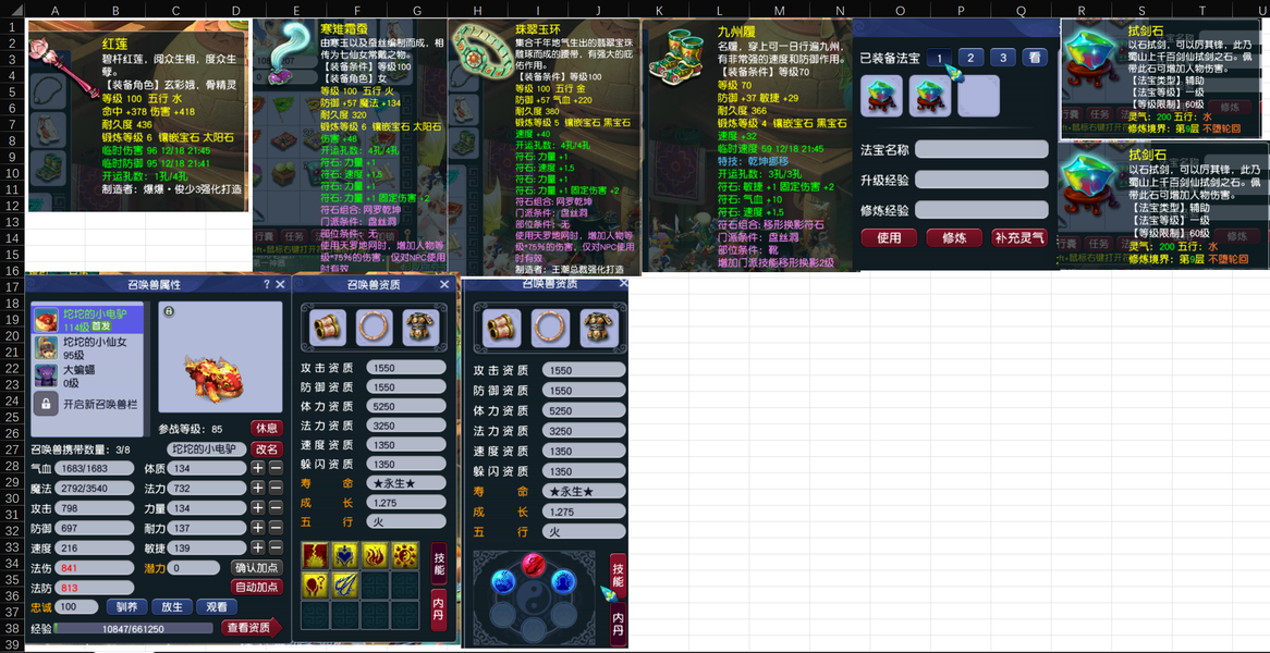 一组109 3盘丝1龙宫1化生组合!带两只3转赤焰兽和3只全红芙蓉!