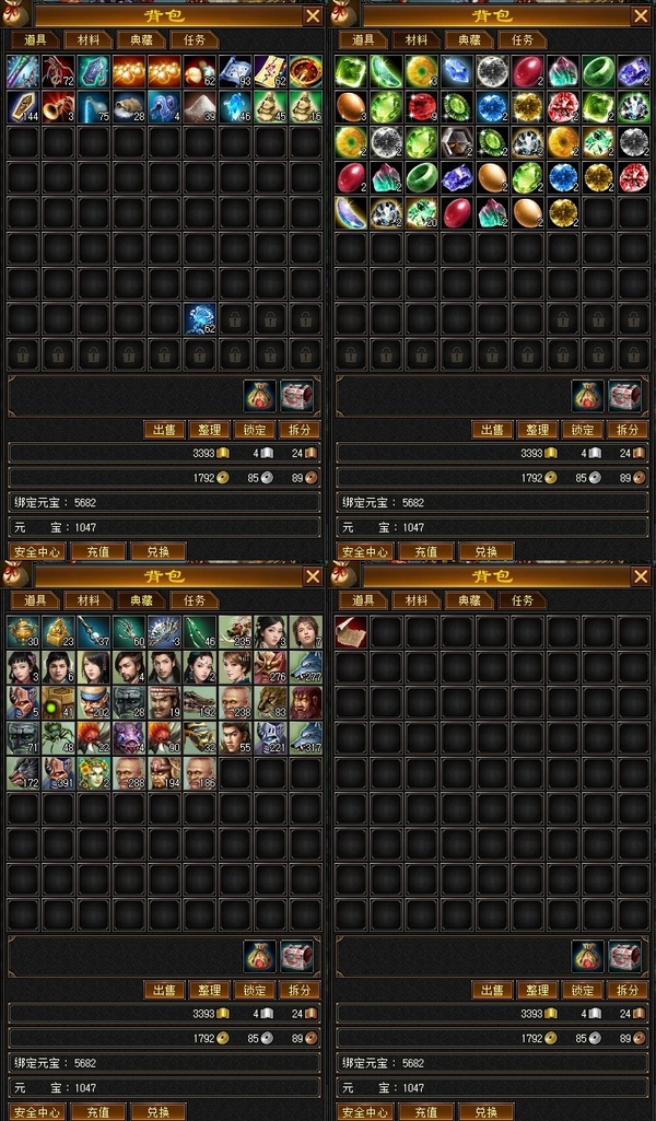 包里还2颗6级毒攻宝石,其他的自己看吧,东西多多。。。