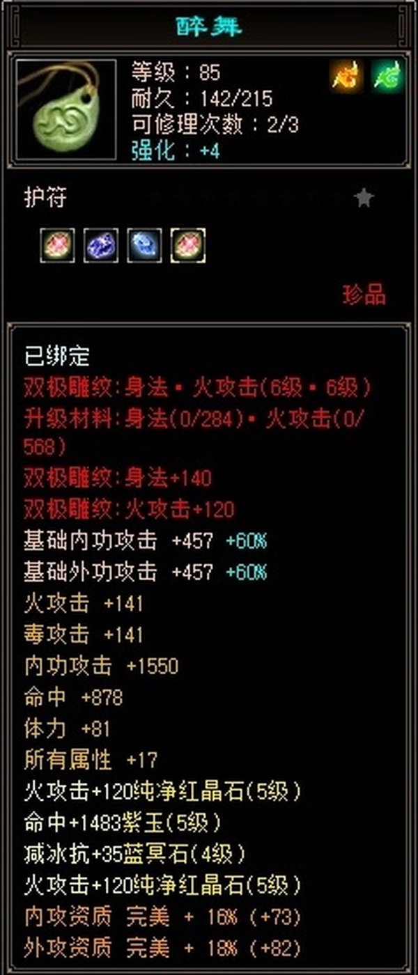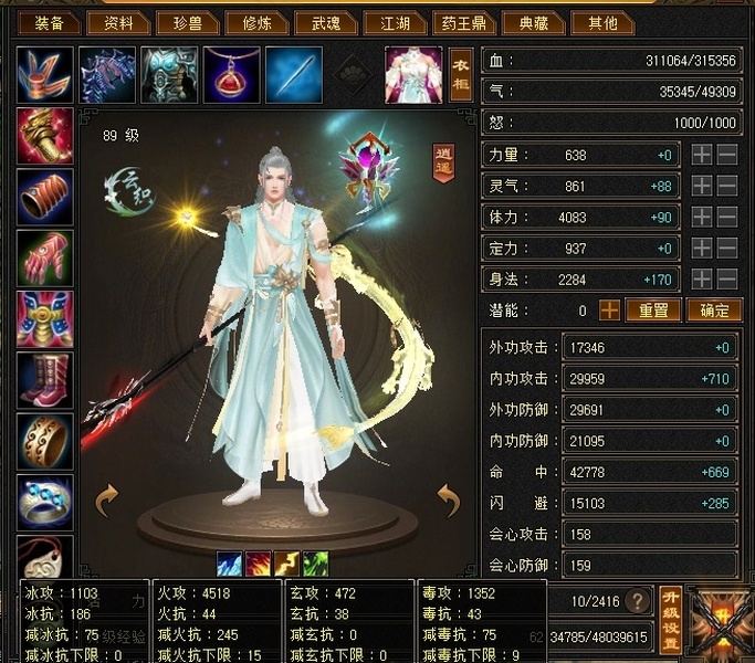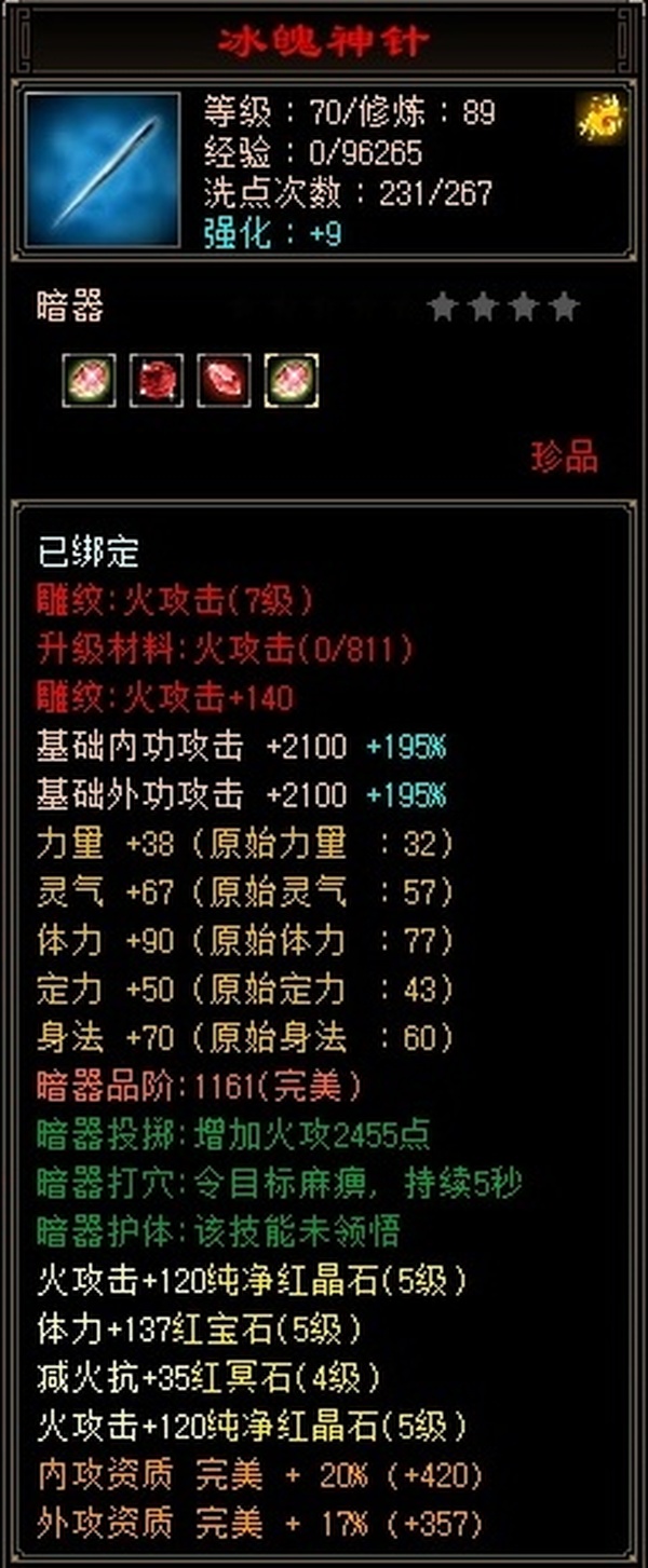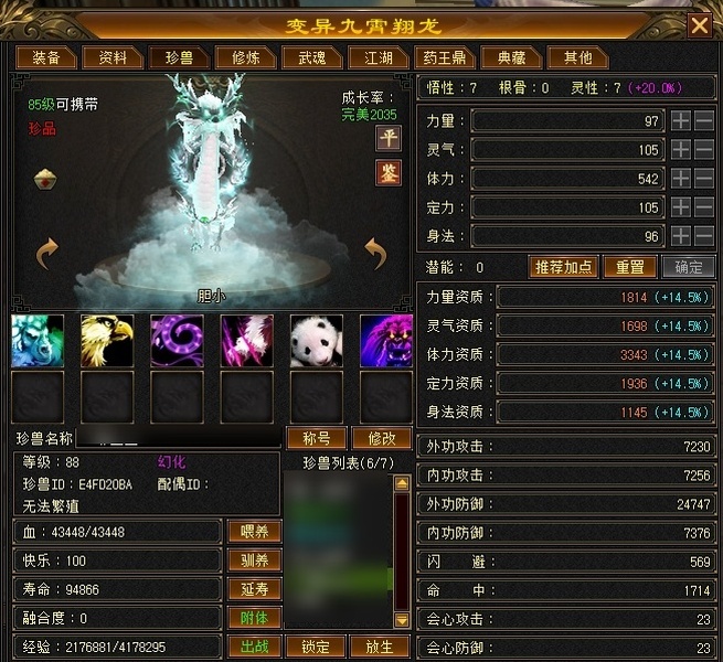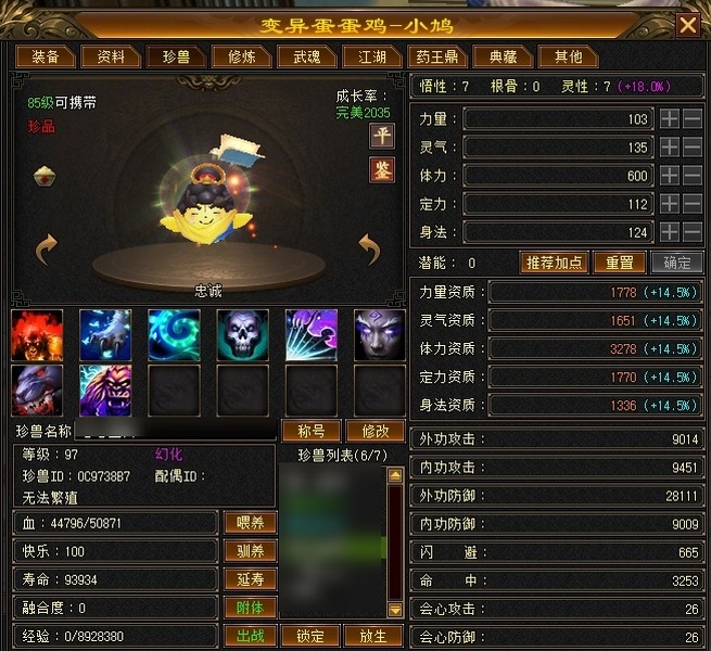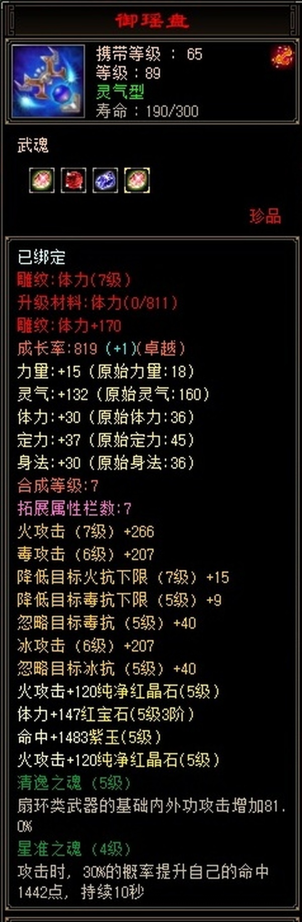卡89细节逍遥,主属性4500,副属性2900,宝石满5带6,2个天雕火攻击、鞋身法齐了。极品七星神器,带5000资质附体宝宝。上手直接玩。