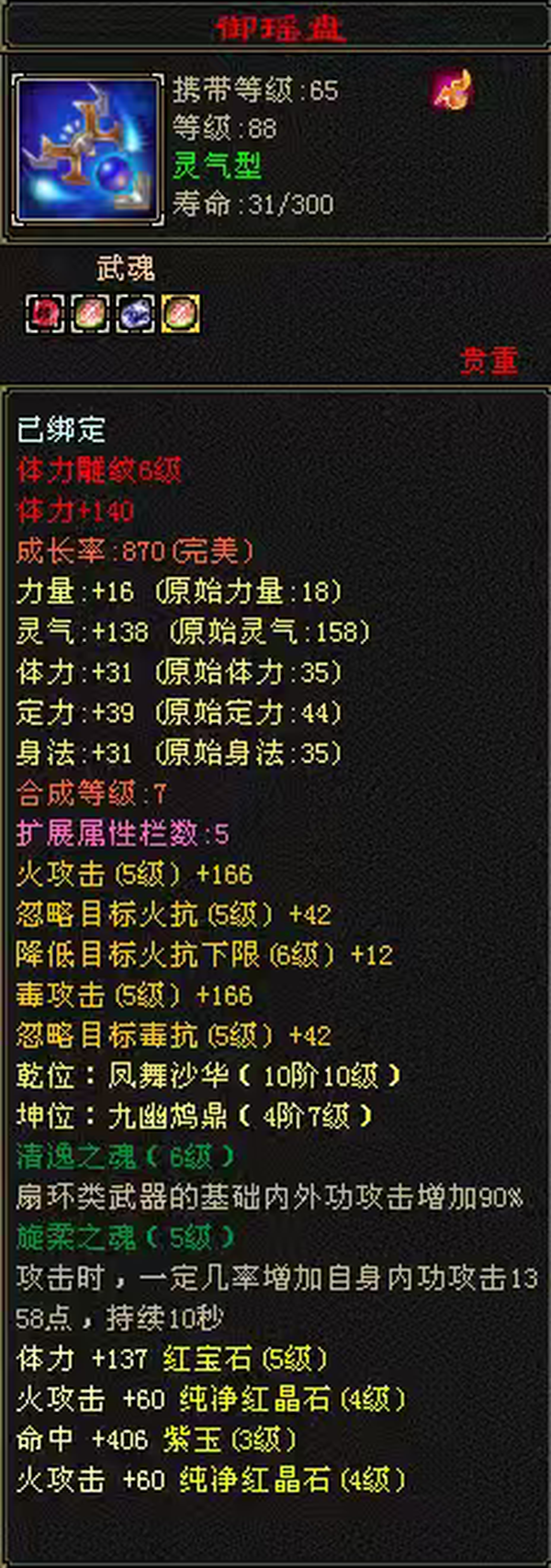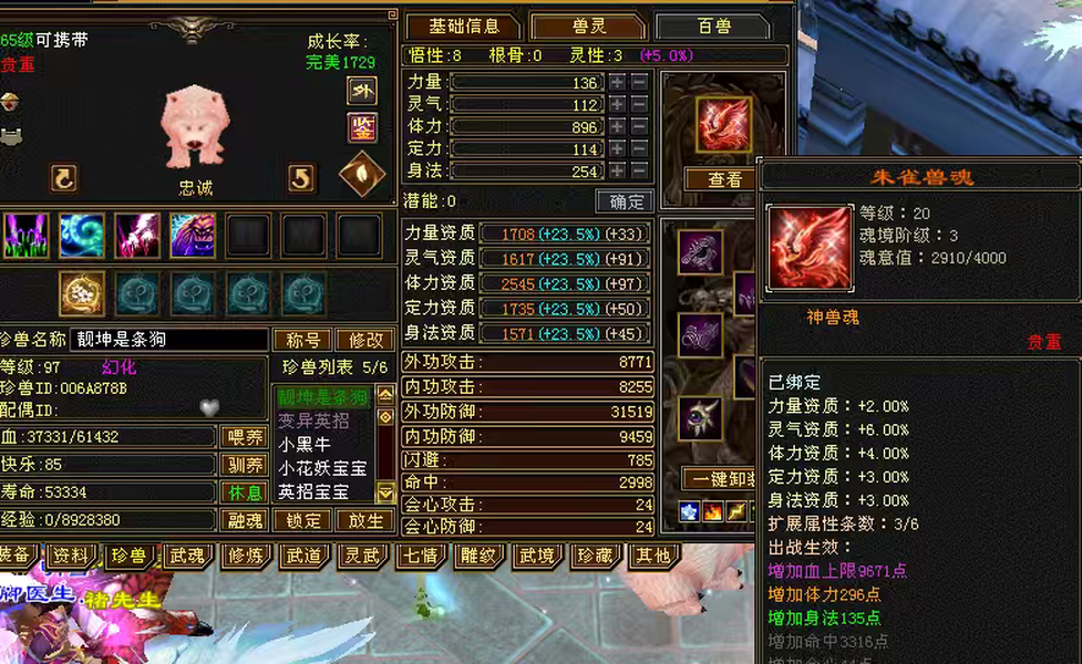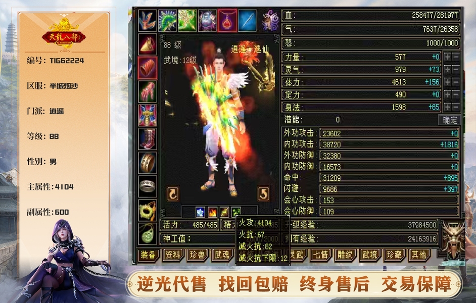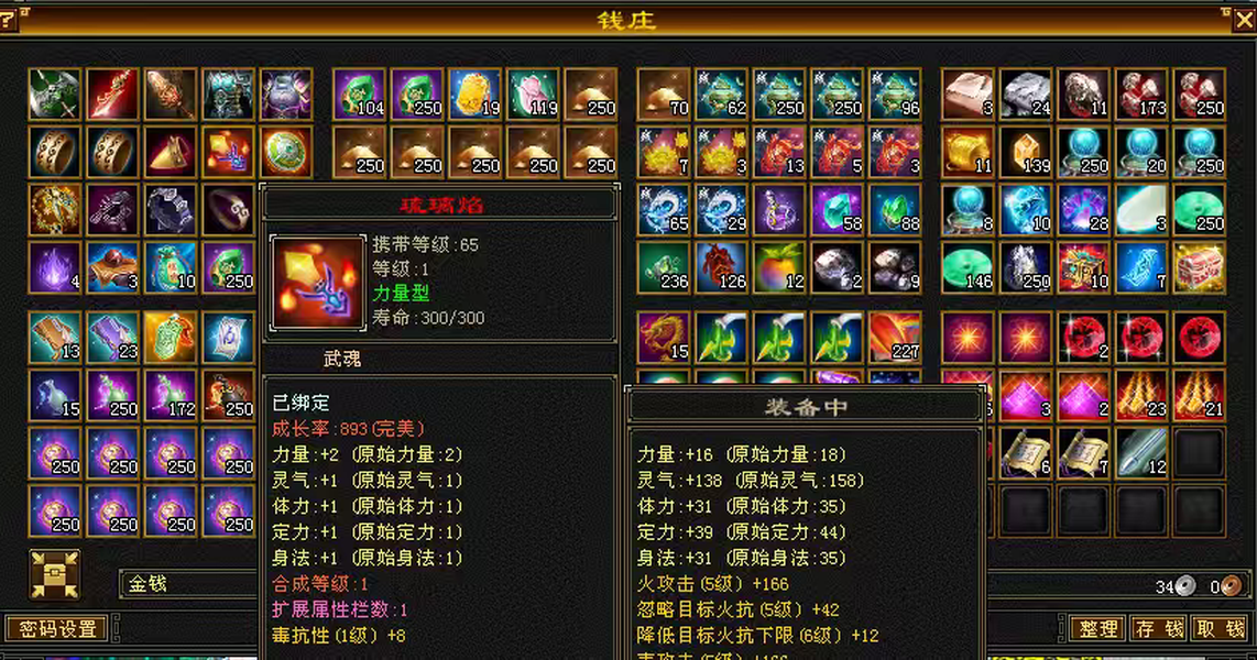 自己看装备,全是大8星,全是自己做的,号品很好,很容易出极品,装备细节到位,灵武全套,武仓库还有个大完美武魂,生活娱乐杠杠的