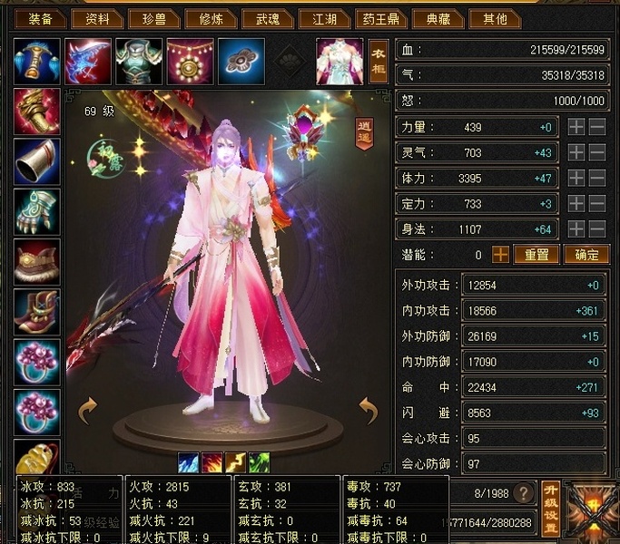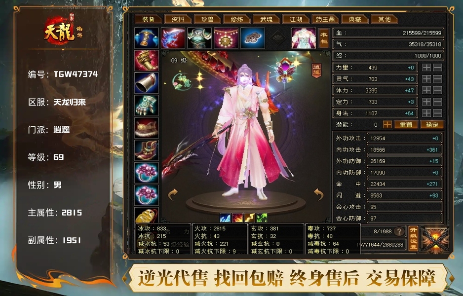 【TGW47374】 | 逍遥 | 等级:69 | 主属性:2815 | 副属性:1951 | 男 | 主火攻