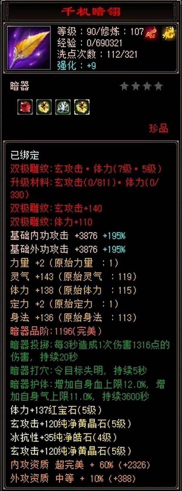 全5武当带4个6级天雕基本全,手工都是8星大极品,包里还有11个5级火炕宝石,还有一套体血流8星手工转峨眉武当都是极品