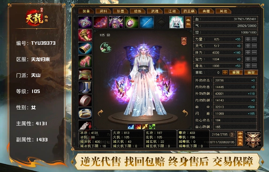 满5天山 5级身法 大完美武魂 换号出 细节自己看 白号一个 畅易阁资料可以自己填