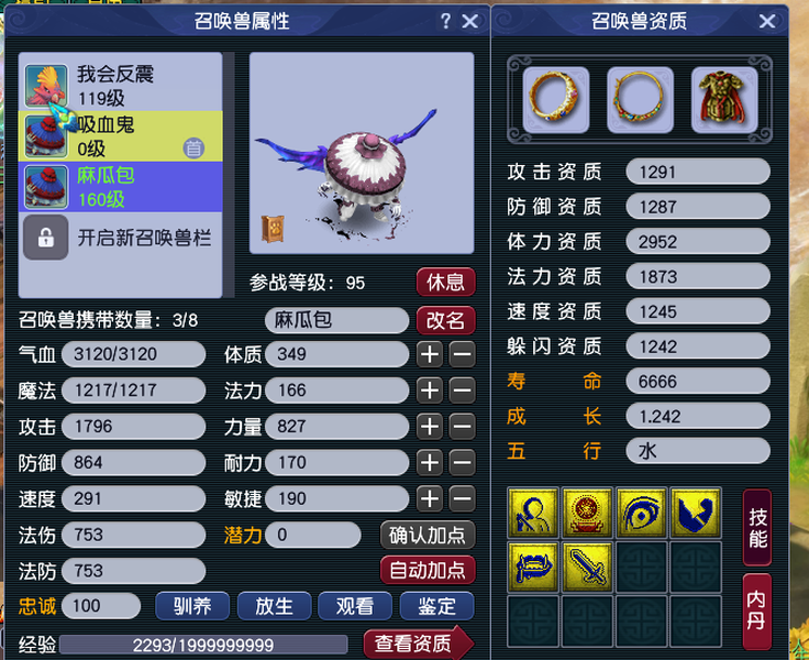 155飞升化生有两套属性(全魔,体耐敏),技能全满上线24,有天阵满级房子,带全套装备宝宝,慈悲满级强生满级,将军时间不够故不能登记支持后期帮登记一切事宜。所有东西都截图