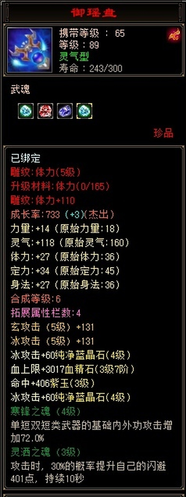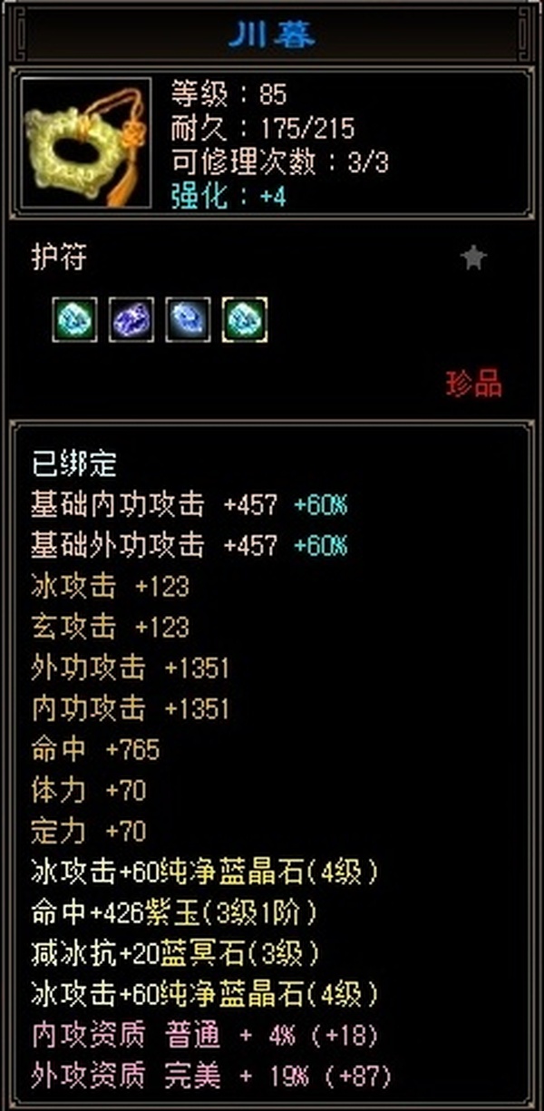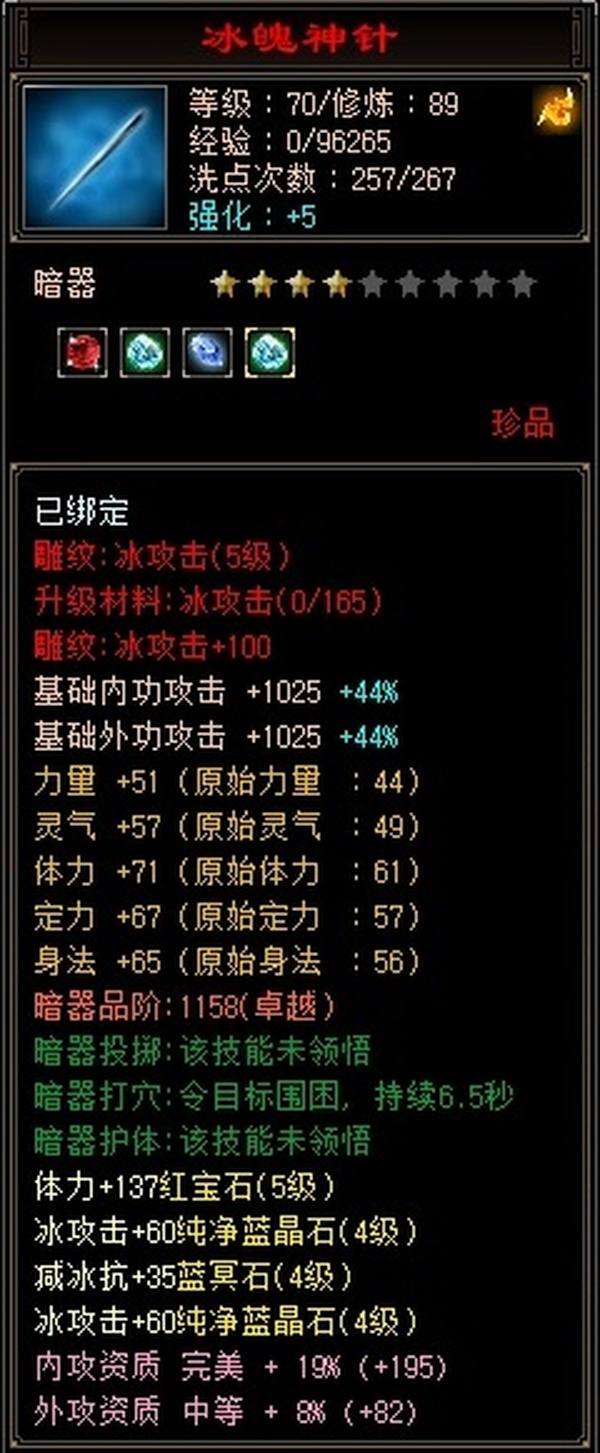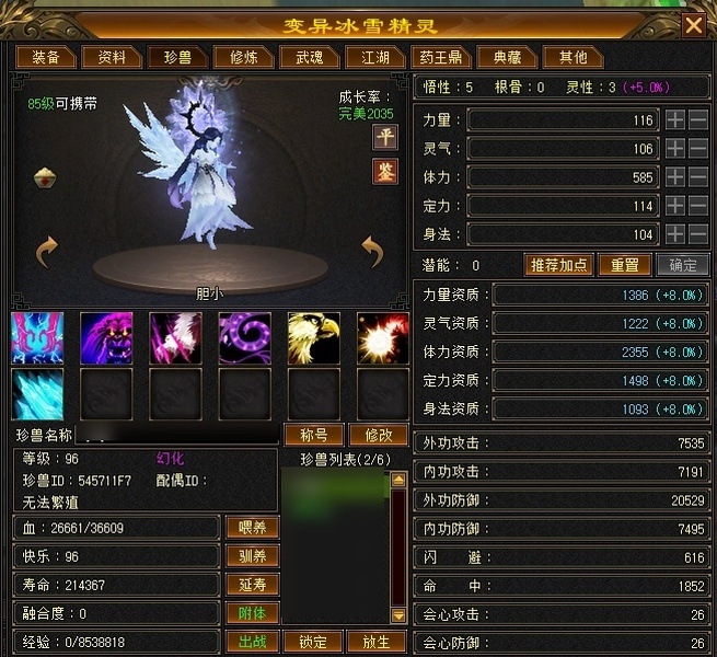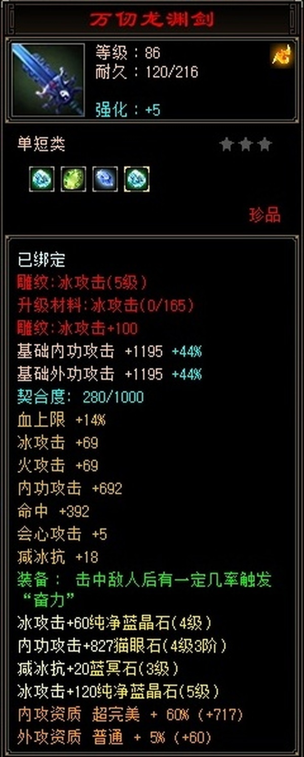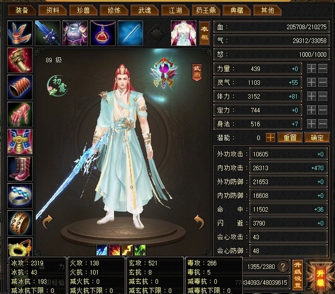 冰武当2300主属性,930副属性,20.6万血,2.6万内功。