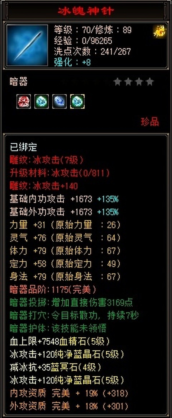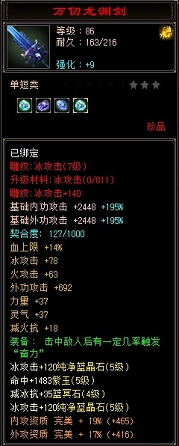 实在没时间接着玩了,各方面都很不错,包里还有几颗四级属性,买来无需投资直接上手即可