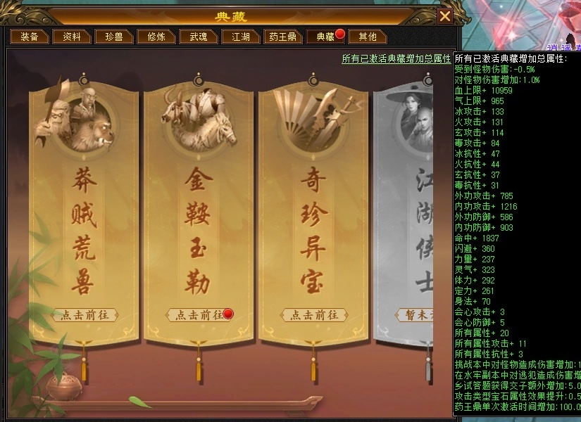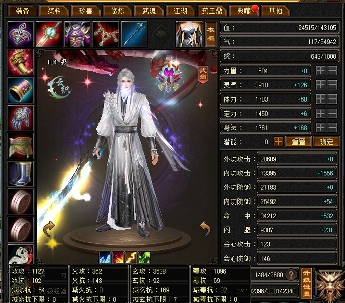 极限灵气武当,每天都在喂养,暗器护体8.2w内功,拉满鼎推人1.2-1.5,寒玉谷平均12w,最高15w
