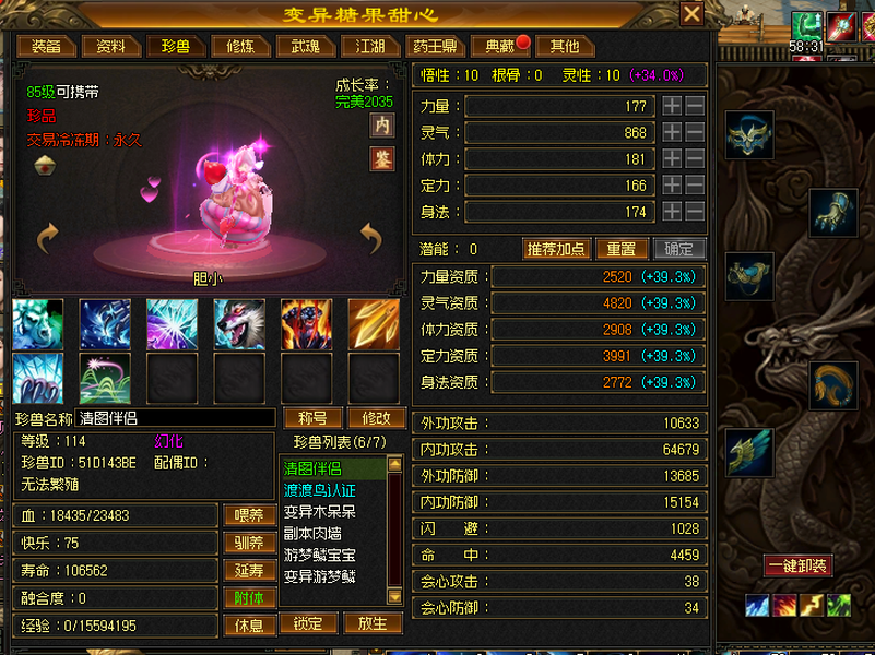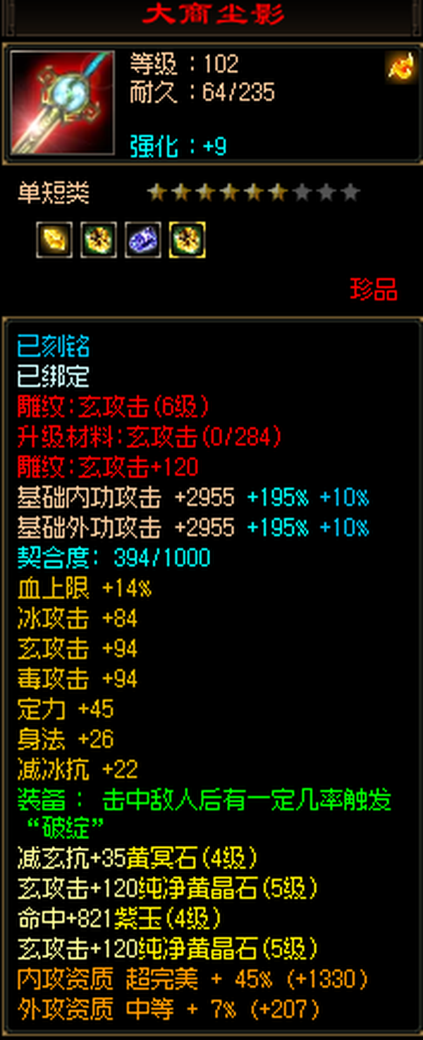 武当 | 等级:104 | 主属性:3541 | 副属性:2585 | 男 | 主玄攻