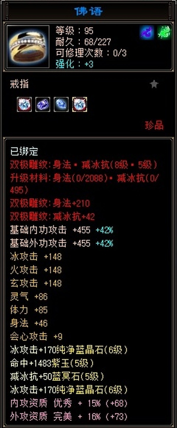各方面细节号。身上还有4万多元宝,仓库里还有2千多个已经冷却好了的寒冰星屑,可以卖金用的。