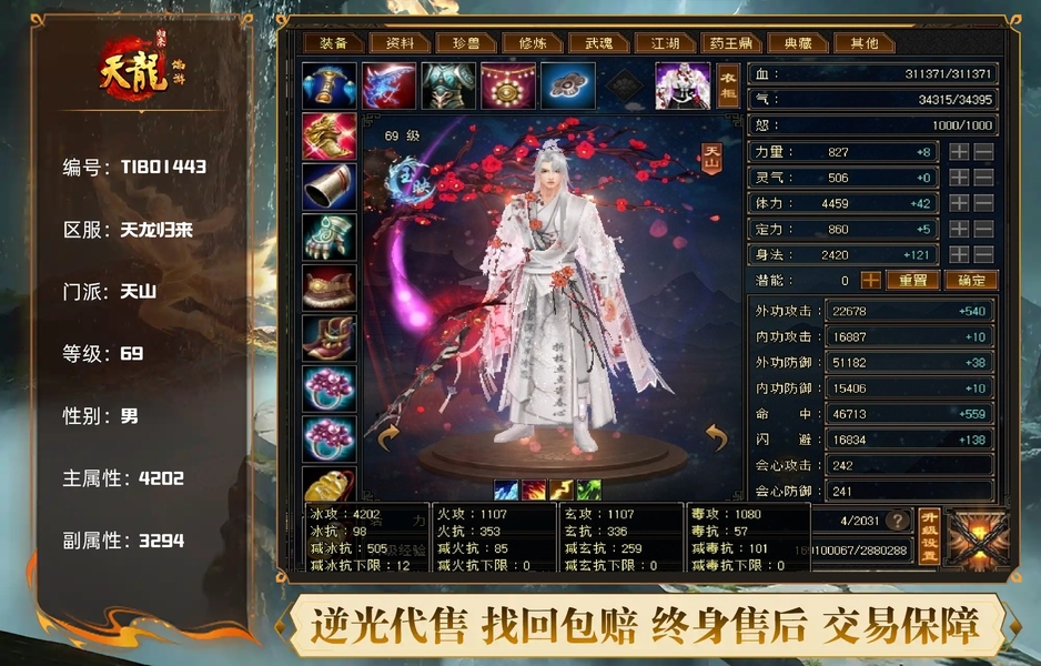 全服第一卡69天山!全服第一风华度!坐骑时装全有,时装附体颜色全!