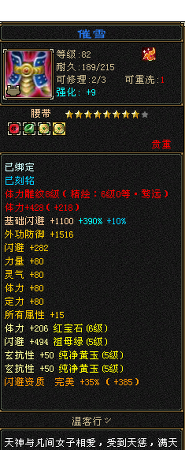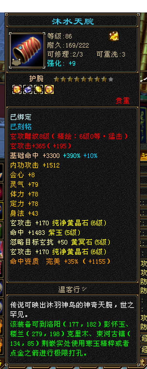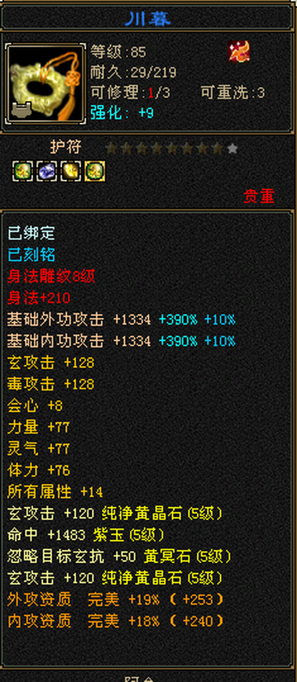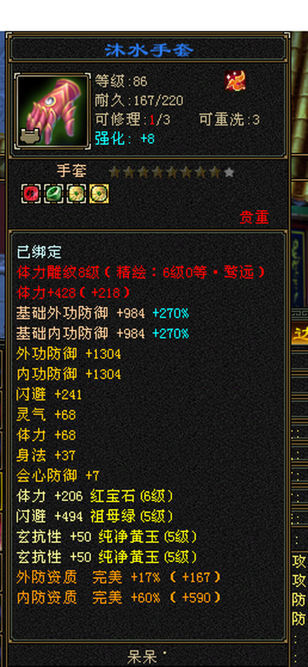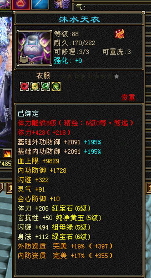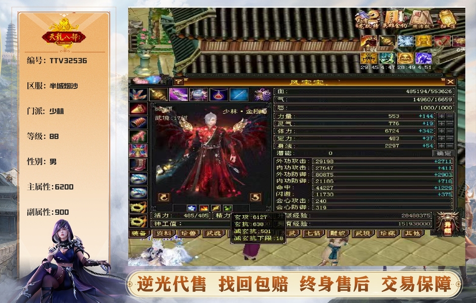 6555宝石+8-6雕纹+红熊王+骨翼底子硬。图是垃圾附体,换个是340会防。带极品灵武,玄毒双修可转曼陀4万多内功,马上领5橙符,仓库一堆髓还可以洗。缺点:长期没人玩称号啥的养成差,不喜挂高慢慢磨,这号你亏一毛钱随时找我