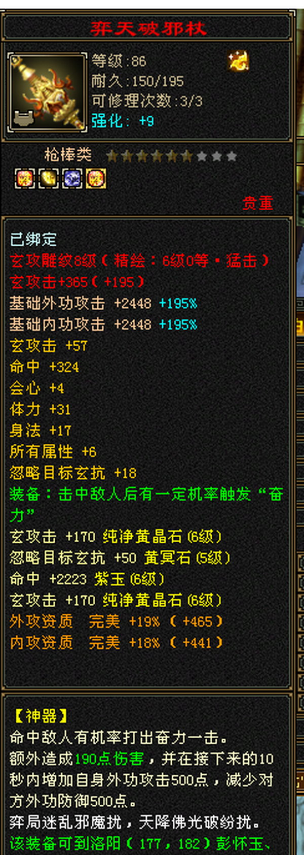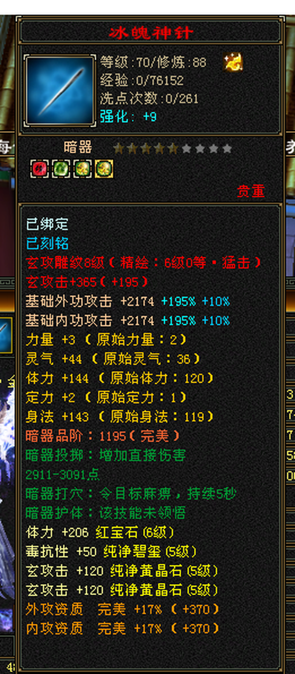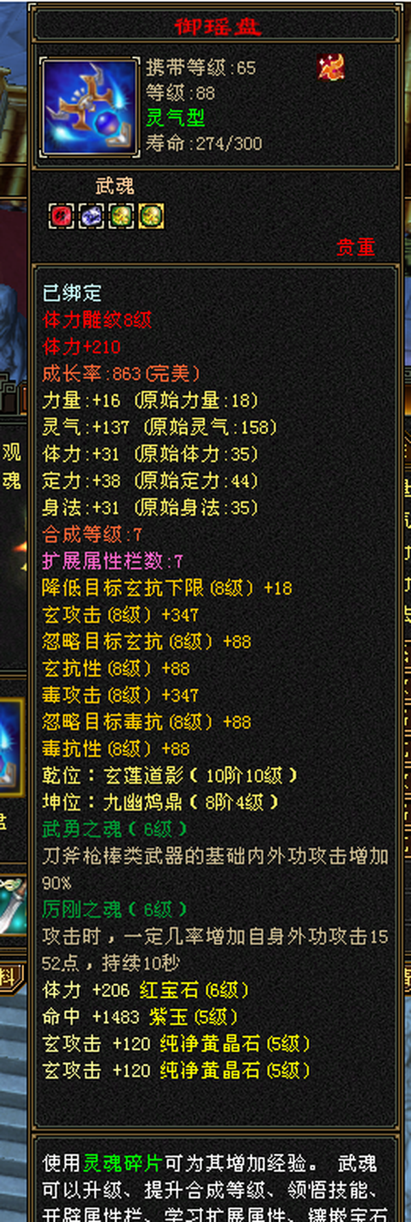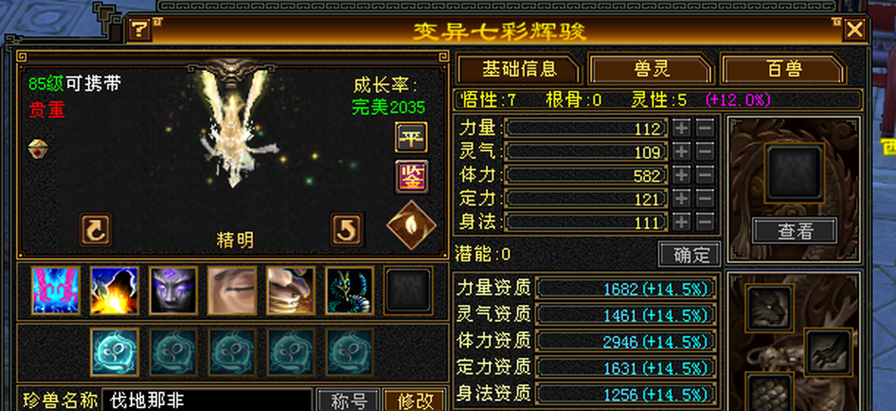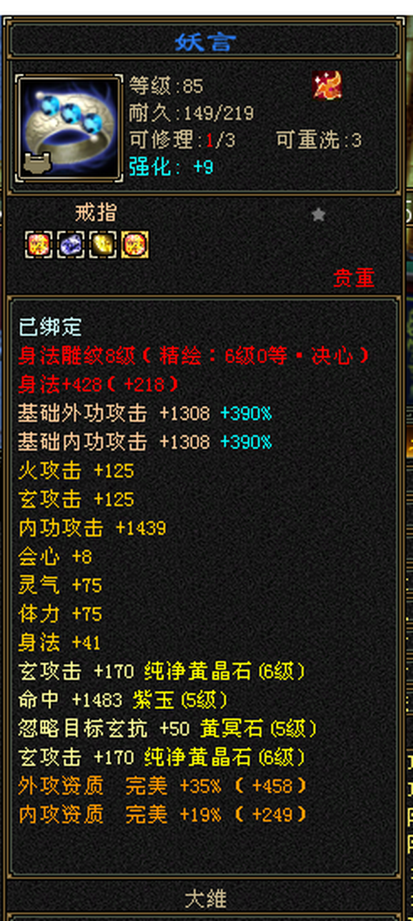 6555宝石+8-6雕纹+红熊王+骨翼底子硬。图是垃圾附体,换个是340会防。带极品灵武,玄毒双修可转曼陀4万多内功,马上领5橙符,仓库一堆髓还可以洗。缺点:长期没人玩称号啥的养成差,不喜挂高慢慢磨,这号你亏一毛钱随时找我