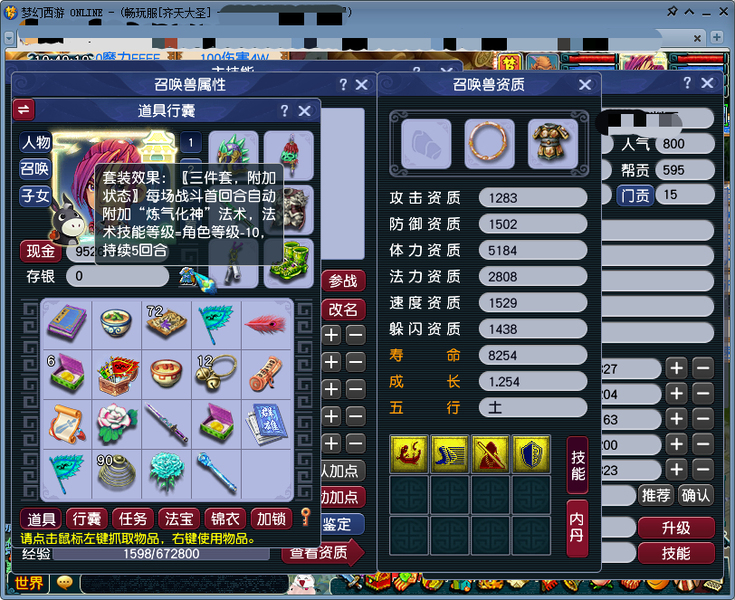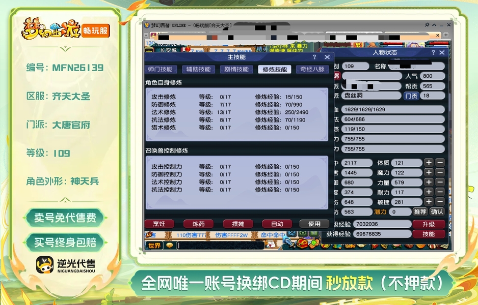 五门没有打符的属性,基本通杀。一套杀气决2套逆鳞。一套练气化神,2套豪宅,789层法宝一共十来个,自己玩的一手号。全部可以换绑定