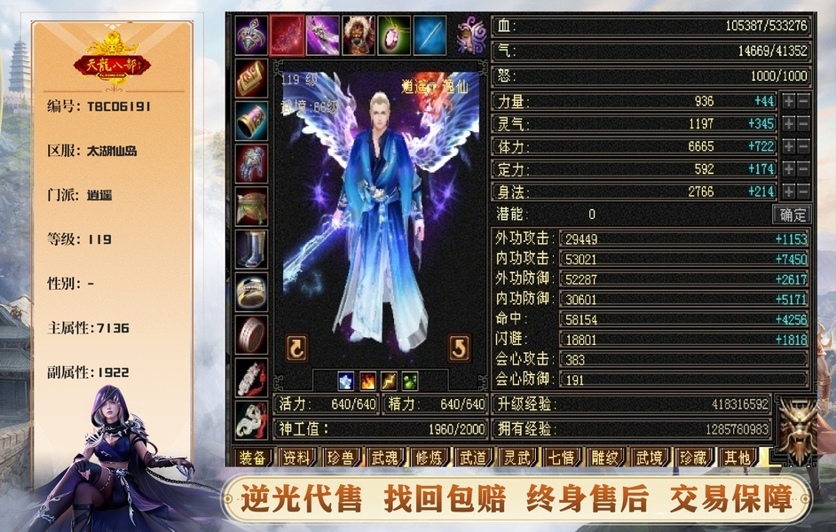 【TBC06191】 | 逍遥 | 等级:119 | 主属性:7136 | 副属性:1922 | 主火攻 | VIP6 | 畅游账号