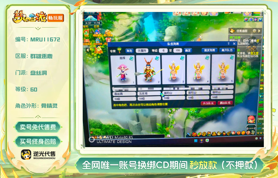 五庄盘丝3普陀.90绿通 60月卡 身上还有5000万的菜 . 一身3段装备.菜我就不出了 捡漏的来吧.不议价.