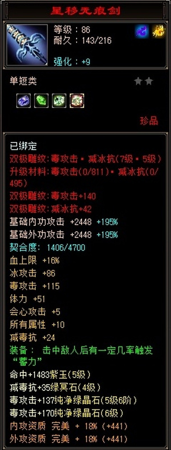 【TSR76446】 | 星宿 | 等级:89 | 主属性:4493 | 副属性:2712 | 男 | 主毒攻
