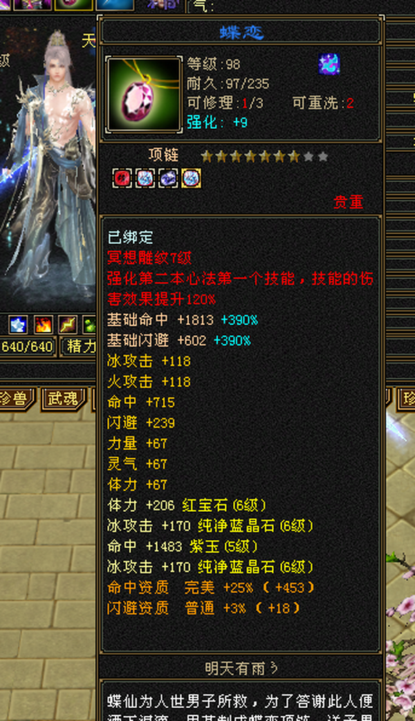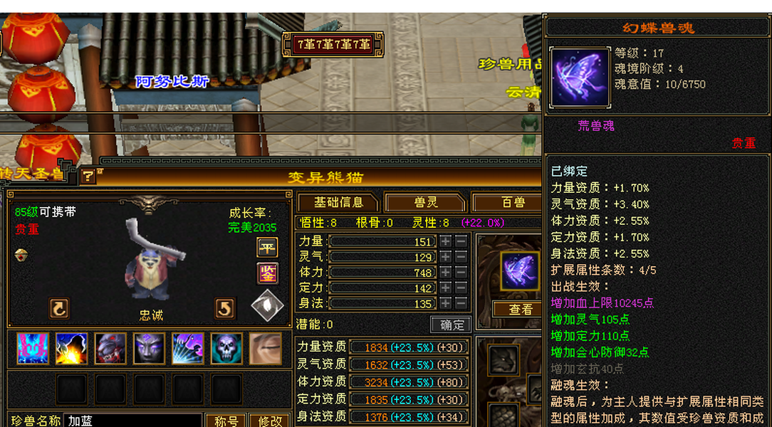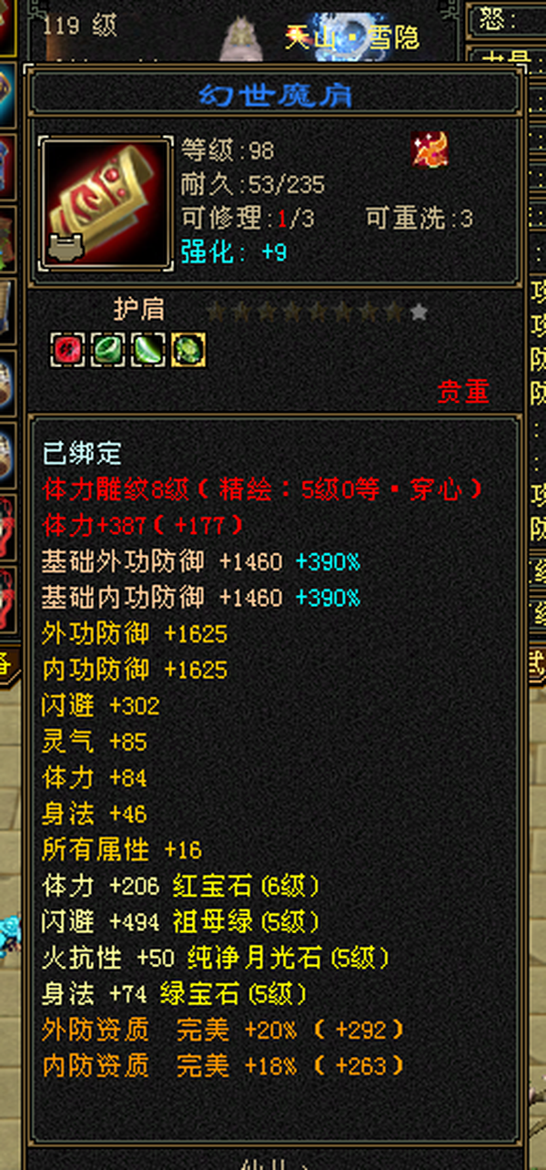 三修无敌丹天山 六体六属六命中 7.5W命中 神兽差300点五阶 带神兽也有7W命中 仓库有两颗五级减抗备用 穿心决心猛击都是五级 带附体出 有事可游戏里找我