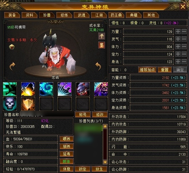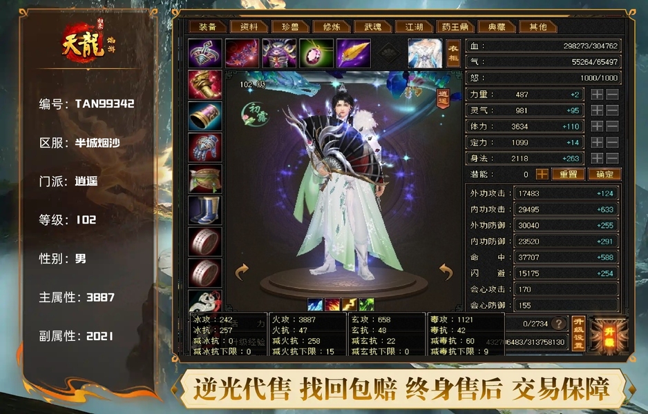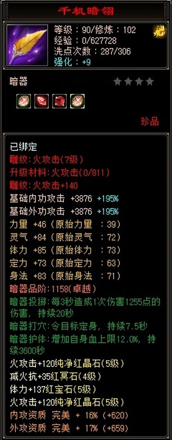 已更新到4060属性 暗器已进阶 带可交易30附体 号上还有8000绑元2000元宝 面板精心打造 可配合上格子