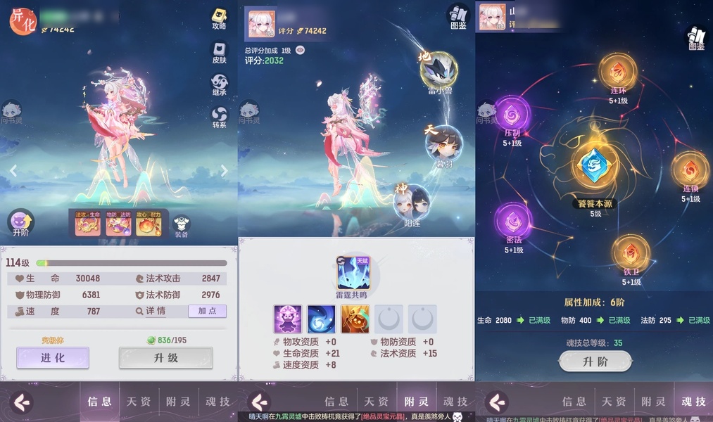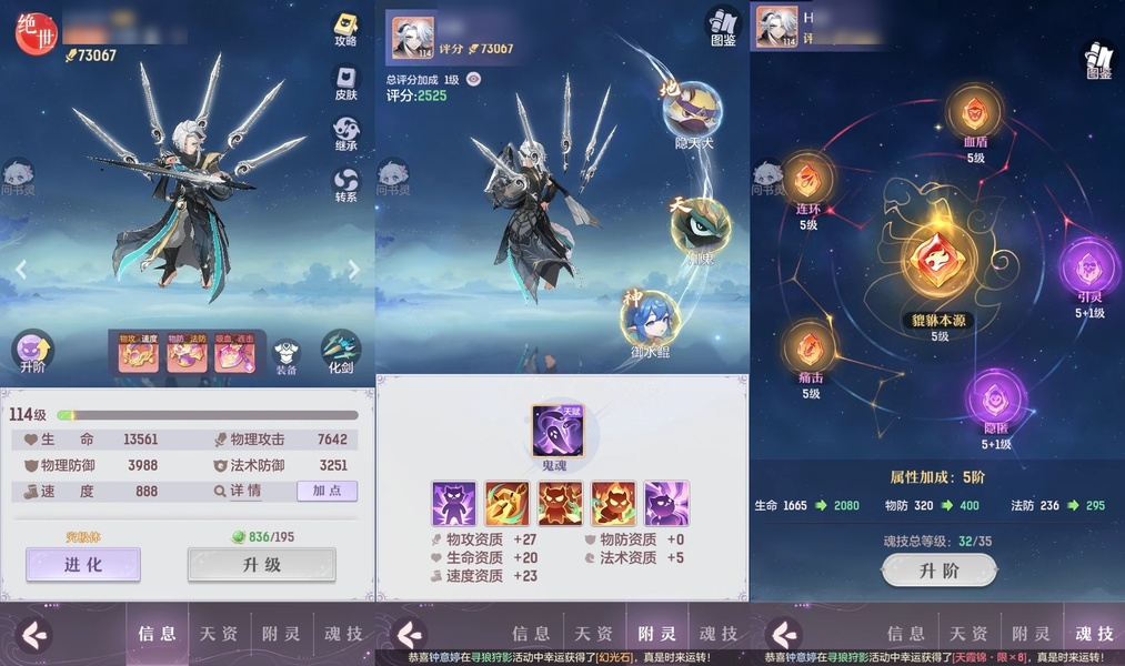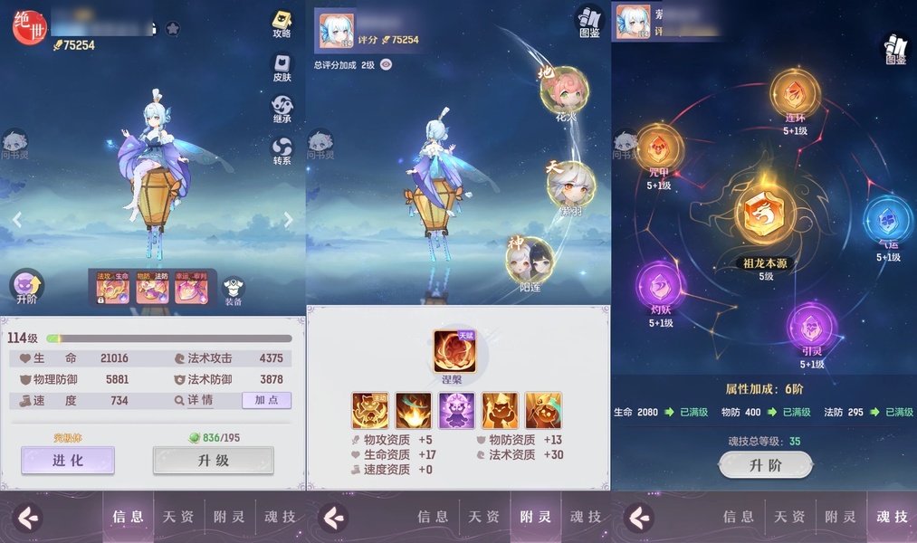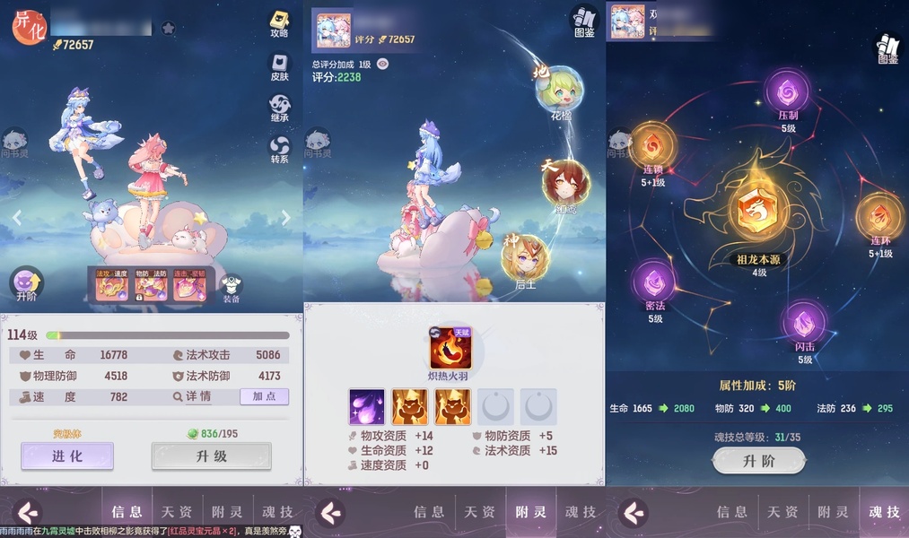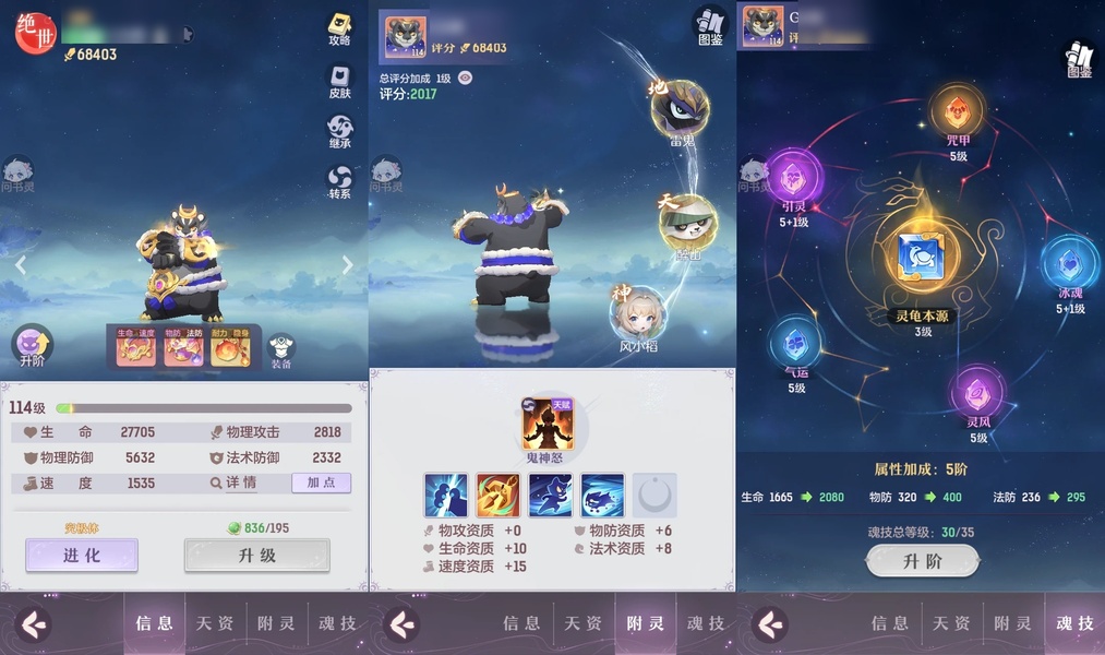 颜值:18384 | 等级:109 | 高老庄 | 神兽数:6 | 法宝颜色统计:10红0蓝 | 总评分:441897 | 角色评分:99285 | 妖灵评分:224288 | 灵师评分:118324 | 倾天三 | 离火苍龙,九春韶华,玉兔月赏,淬金曜蚀,织梦星海,山君现,哈?我当武器?,碎梦语情,炙烤大串,一刹雷鸣,墨染尘烟,星河揽月 | 凤凰游,蝶恋芳菲,火神·赤曦 | 祥云,蟹有钳,钱多多,气球派对,七彩灵鲲,灵华引,星昀渡,万海真君,蕴灵天剑,血蚀苍牙,负山海,北域霜枭,跃龙门,鸭与云游,红莲·出尘,兔球,风火乾坤,贯日神君,焚天火凤,花将军,招财进喵,乘风入梦,狐心入梦,风驰电掣,踏火焚夜,凤蝶·梦浮生 | 【买号找回永久包赔】