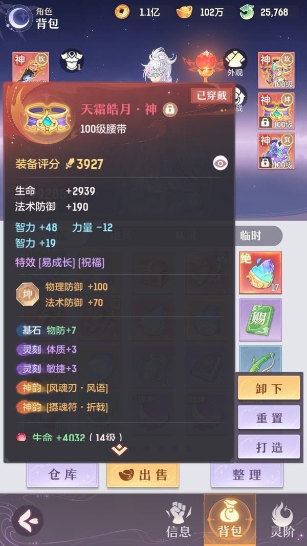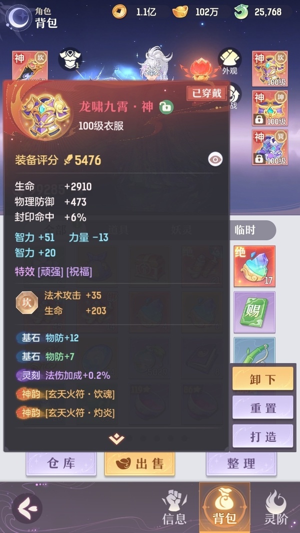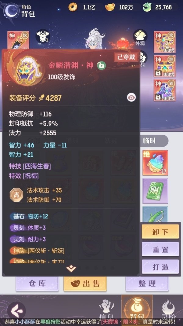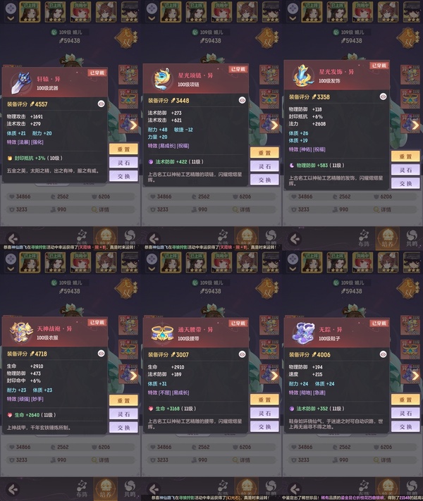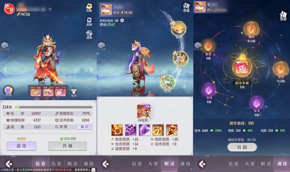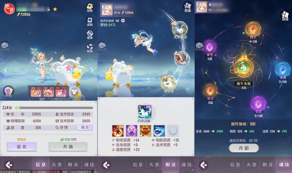 颜值:18384 | 等级:109 | 高老庄 | 神兽数:6 | 法宝颜色统计:10红0蓝 | 总评分:441897 | 角色评分:99285 | 妖灵评分:224288 | 灵师评分:118324 | 倾天三 | 离火苍龙,九春韶华,玉兔月赏,淬金曜蚀,织梦星海,山君现,哈?我当武器?,碎梦语情,炙烤大串,一刹雷鸣,墨染尘烟,星河揽月 | 凤凰游,蝶恋芳菲,火神·赤曦 | 祥云,蟹有钳,钱多多,气球派对,七彩灵鲲,灵华引,星昀渡,万海真君,蕴灵天剑,血蚀苍牙,负山海,北域霜枭,跃龙门,鸭与云游,红莲·出尘,兔球,风火乾坤,贯日神君,焚天火凤,花将军,招财进喵,乘风入梦,狐心入梦,风驰电掣,踏火焚夜,凤蝶·梦浮生 | 【买号找回永久包赔】