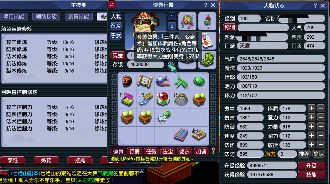 100级通刷完美五门,大唐、化生、天宫、五庄、盘丝,全部三修10,每个号经验都够直升120,180绿通都还有98天。物理、法系、配速、装备齐全。所有号都有动物套。网易支付已注销,可上阁子,有一手卖家联系方式。