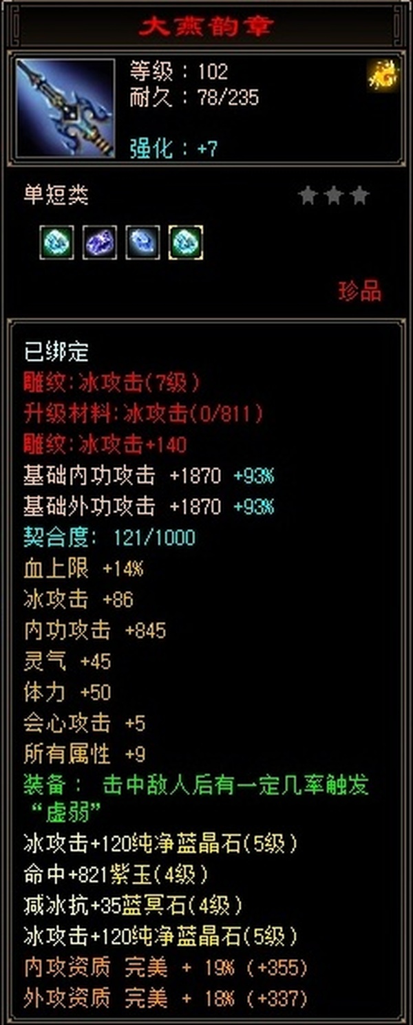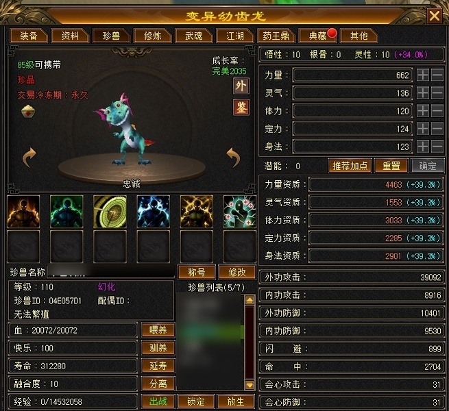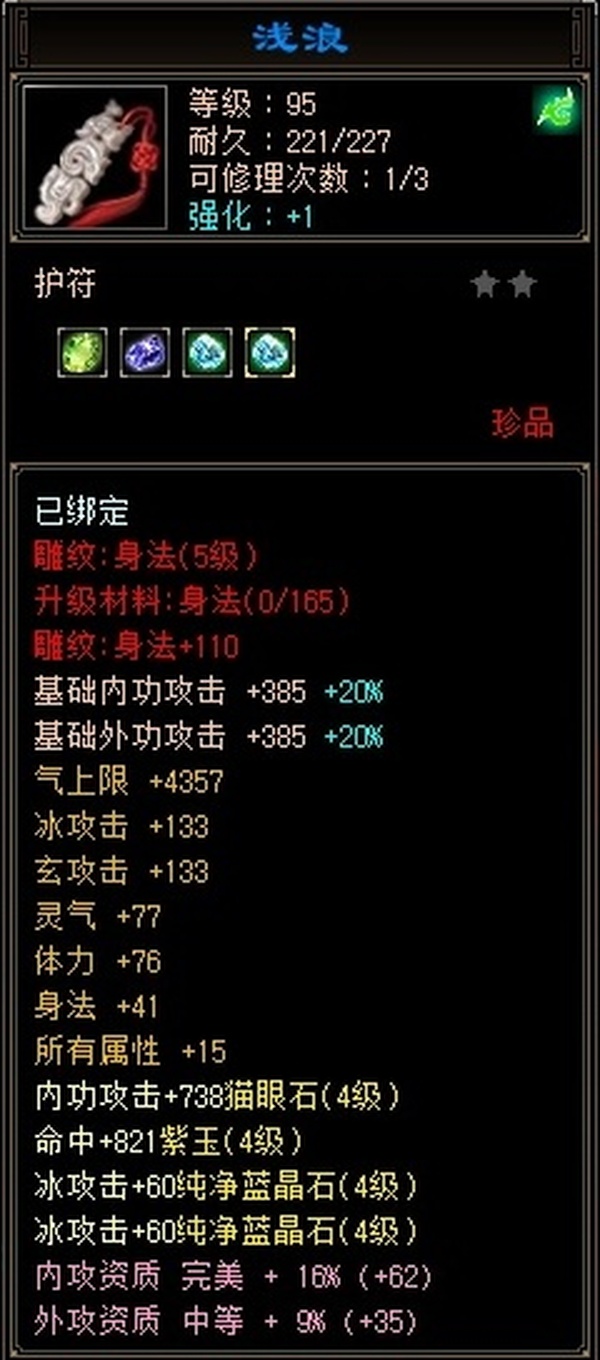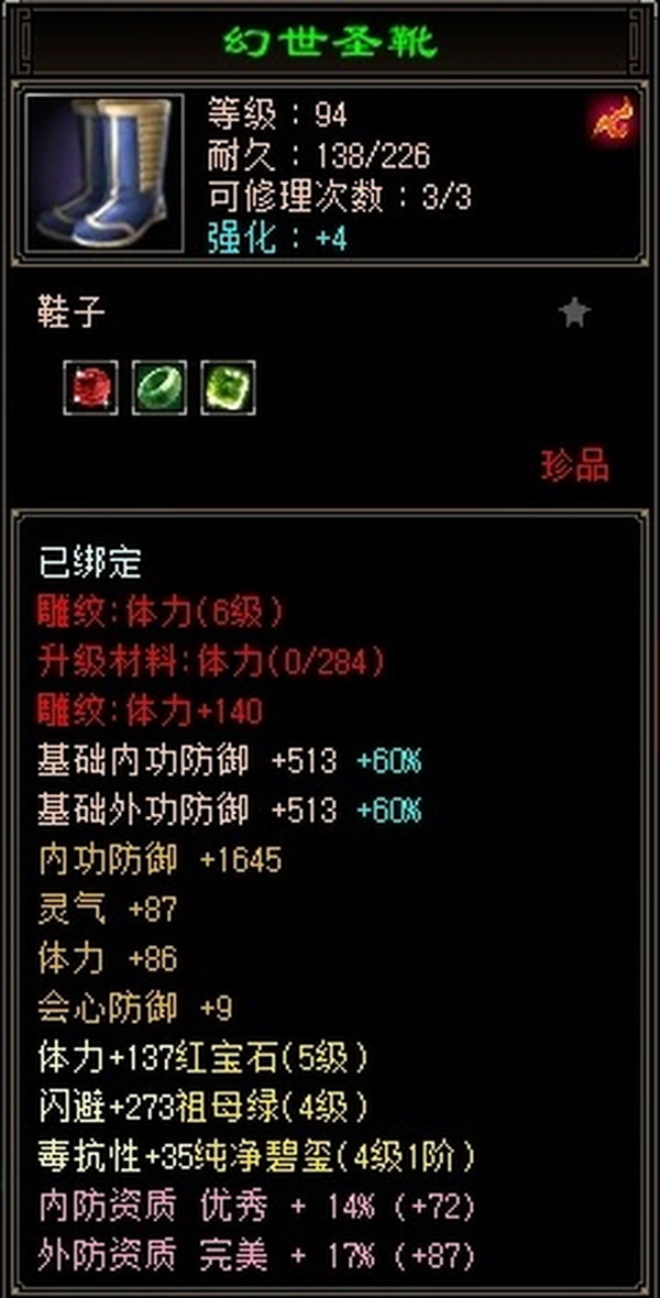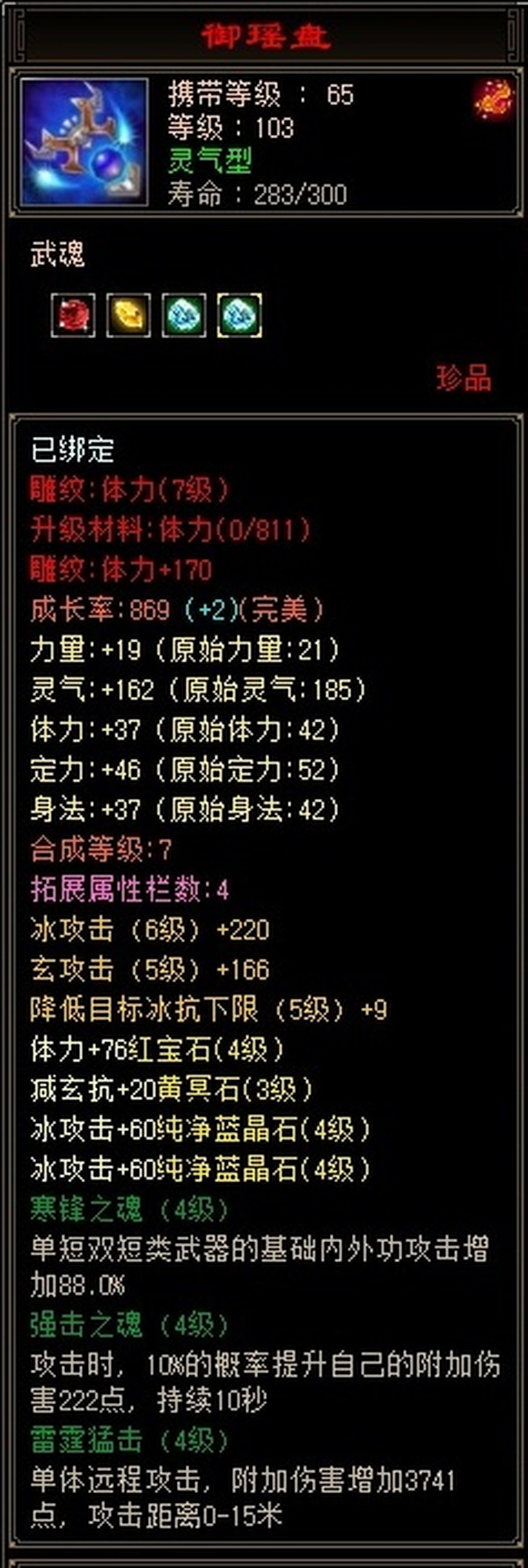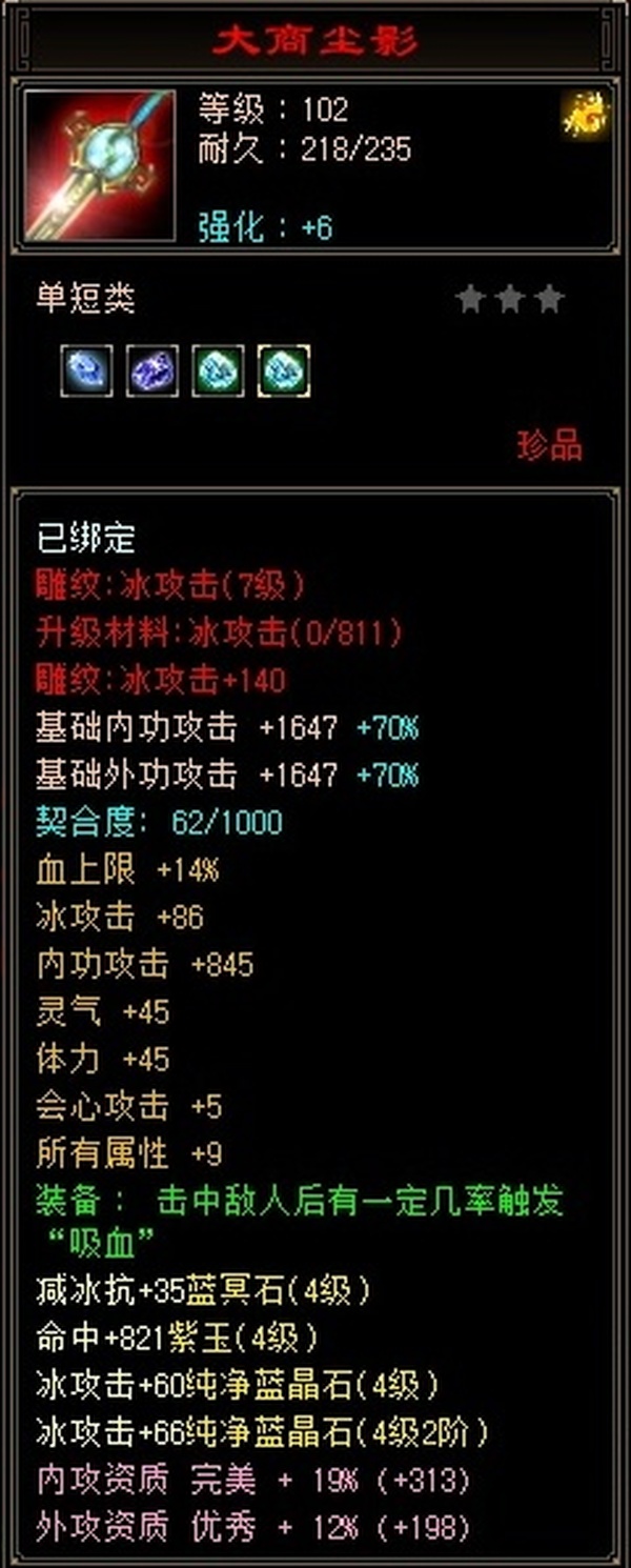 三十附体带游龙,悟10顶变95龙,拿来直接上手,打架硬控小能手。 更新腰带换成6级冰抗。