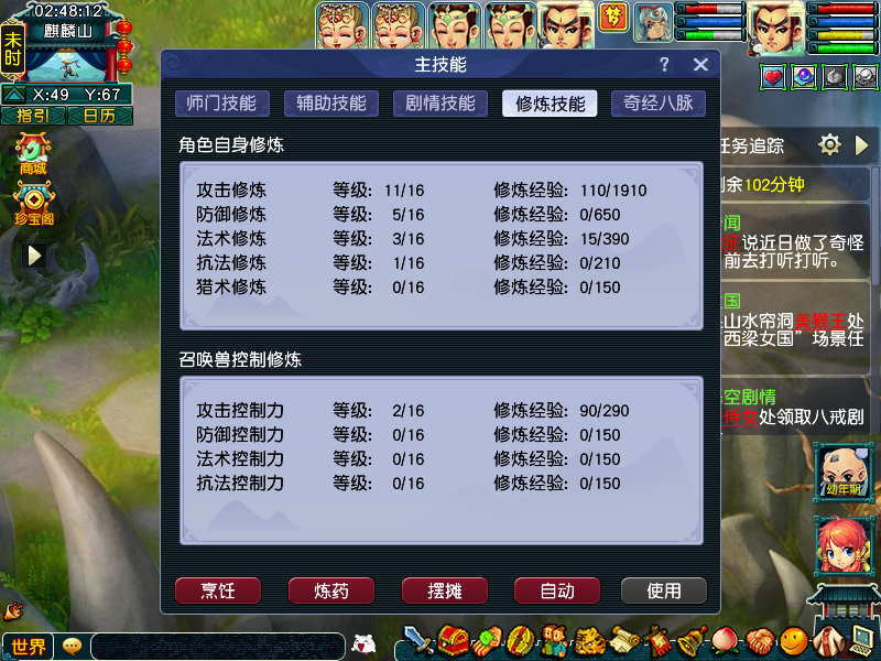 WZ修11 5 3 1 PT4个基本7 7 8. 空号 5个号炼药80。 85八戒剧情还没打。