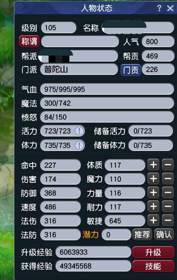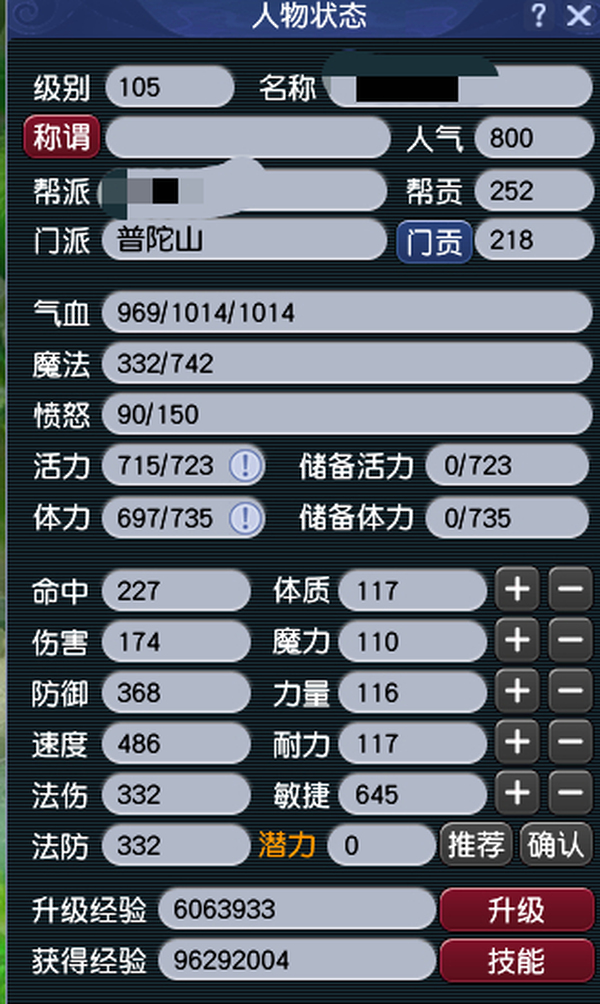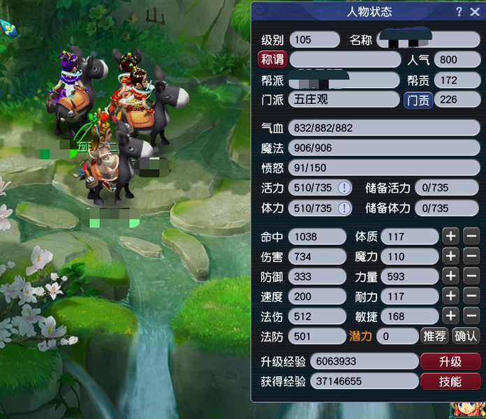 1武装4普陀 五庄观没修 普陀山法修马上8 法抗2 随时能点修 有系统送的雨师满级 凤凰也有 剩下几乎空号