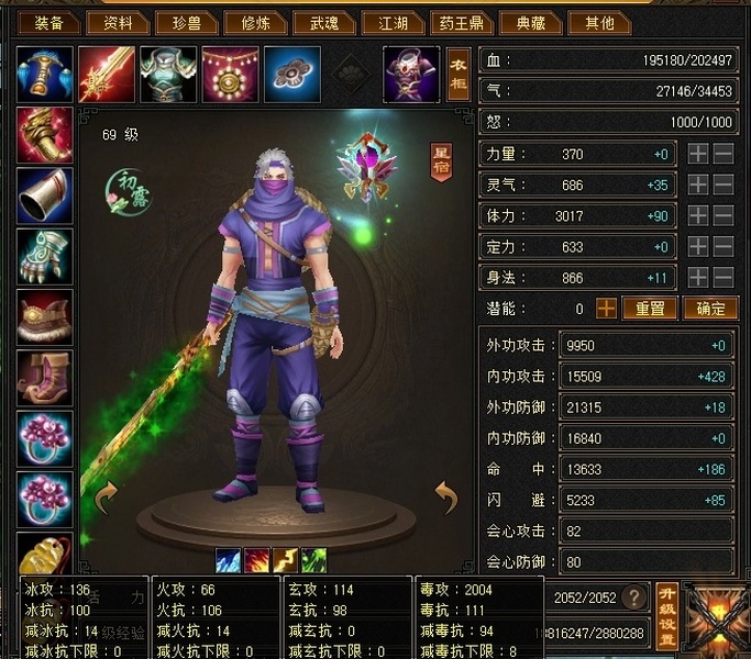 【TUI49671】 | 星宿 | 等级:69 | 主属性:2004 | 副属性:316 | 男 | 主毒攻
