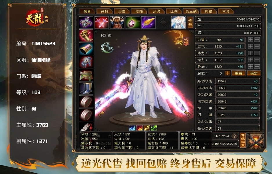 【TIM15623】 | 峨嵋 | 等级:103 | 主属性:3769 | 副属性:1271 | 男 | 主玄攻