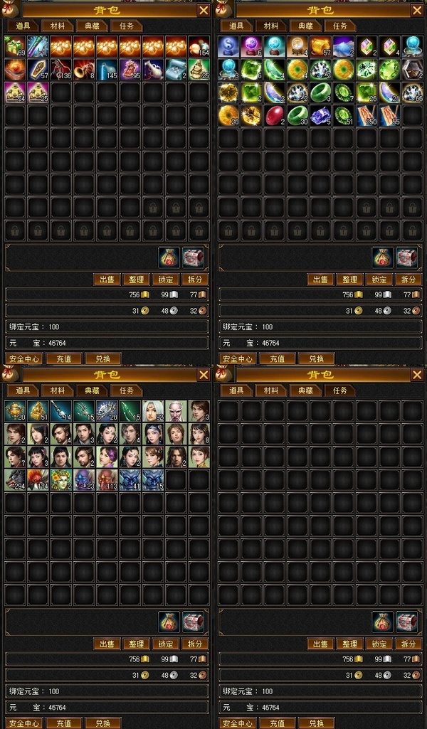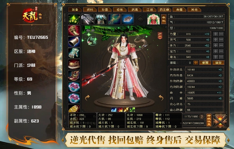5体5属满雕文,4套4级抗性,带4.7万元宝,30附体,悟10肉墙,4万金币材料【可自由交易仓库图在补充里】额外送5万高质量金币号。宝宝算你1500,号算你1500,元宝算你1100,金币材料算你1900,金币号算你3000【赠送】。