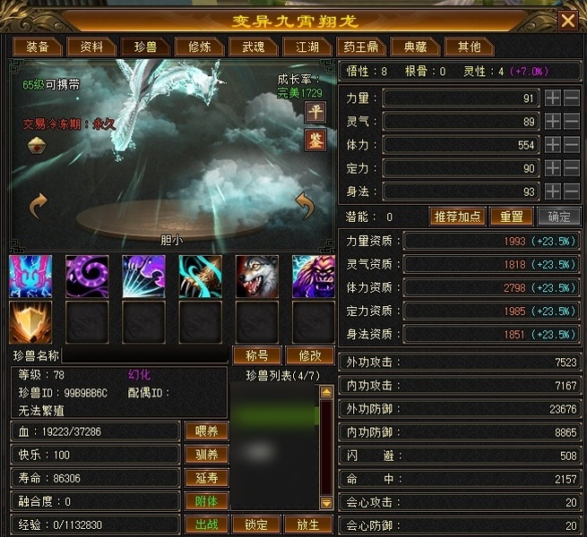 顶级血量,差4颗5级属性石头,就是顶级属性了,可以慢慢白嫖。带永久大翅膀,本区卡69级超级多,这号排名前20。