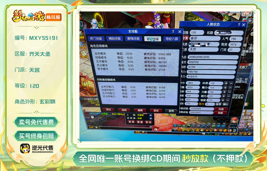 【MXY55191】 | 总经验:11000万 | 等级:120 | 天宫 | 无换绑CD | 180天尊享特权 | 女 | 【逆光代售卖号0手续费】【买号找回永久包赔】