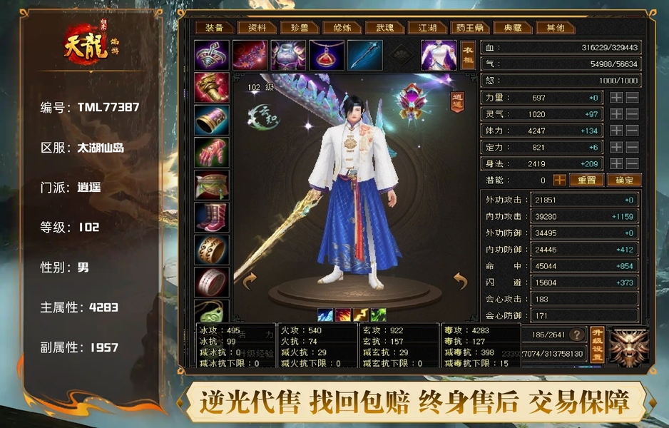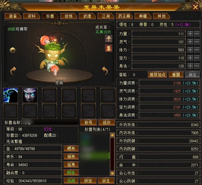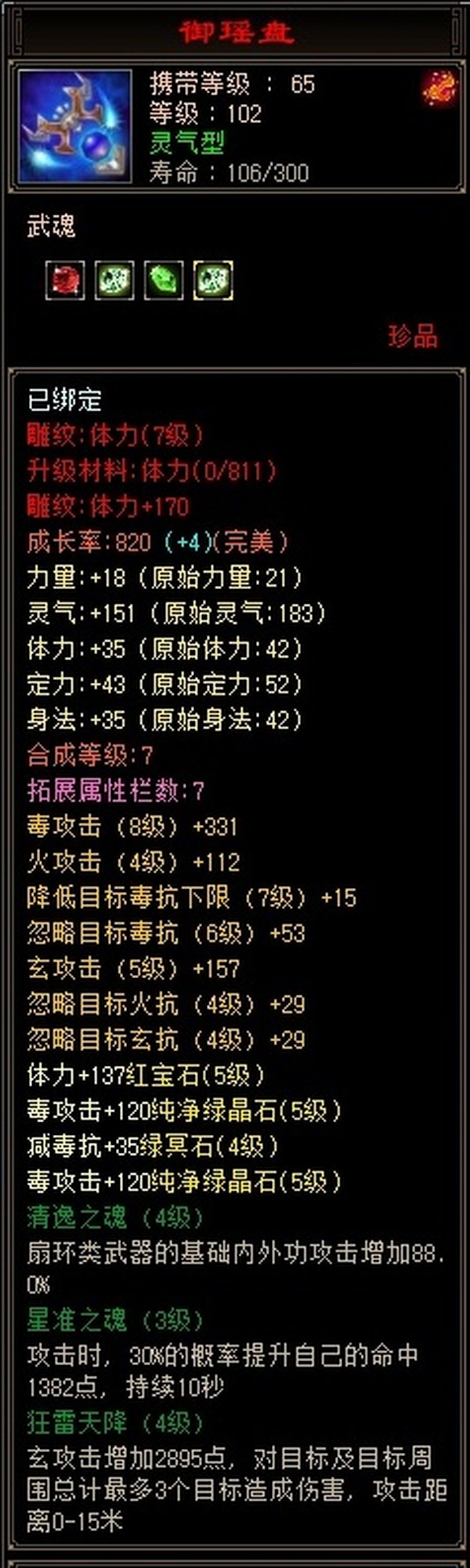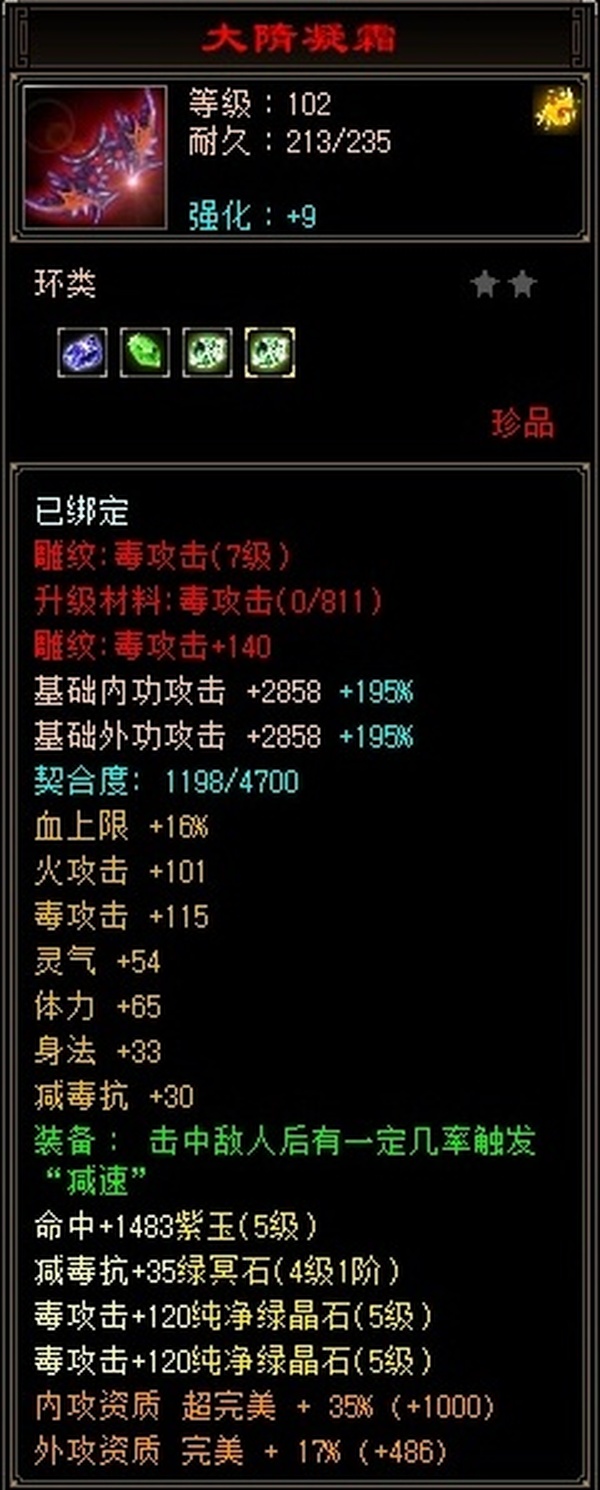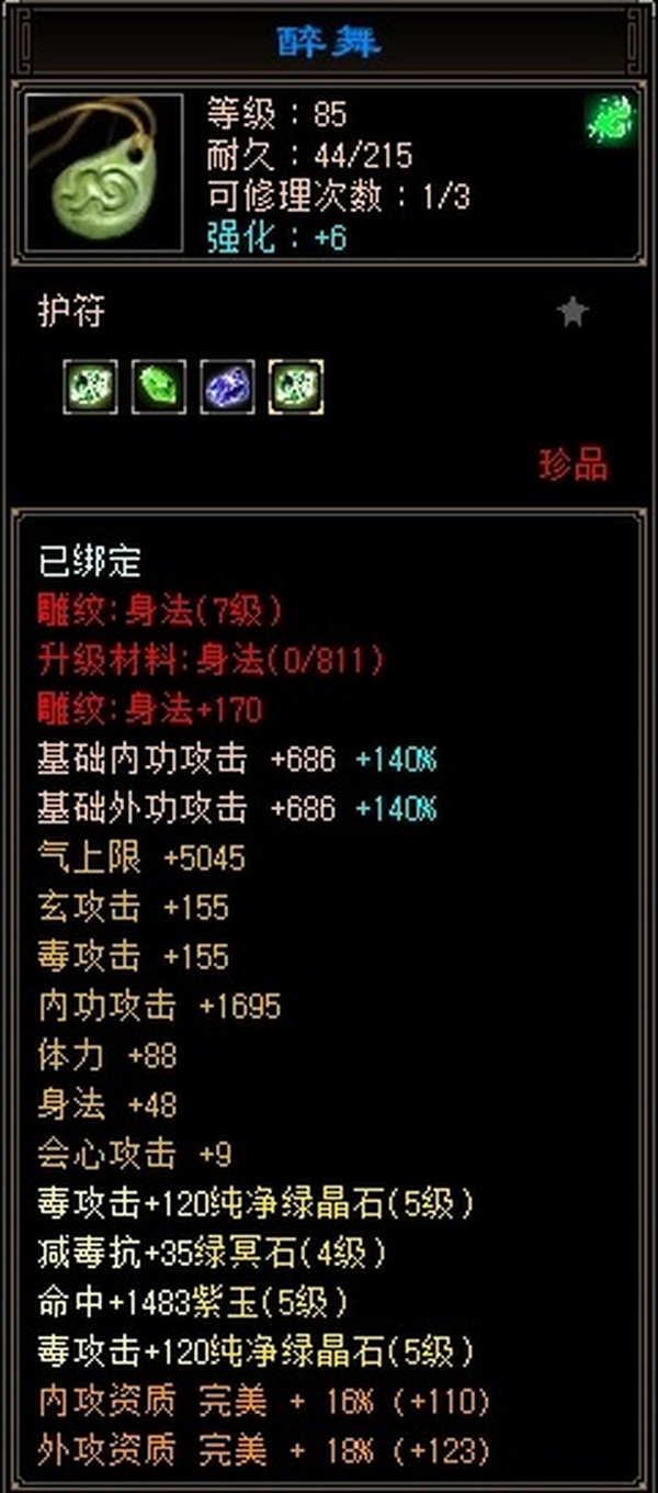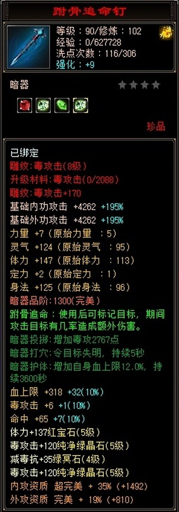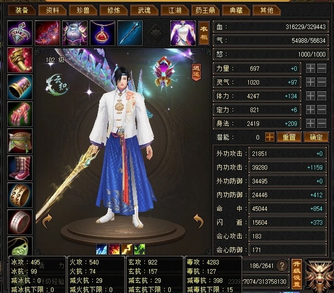 身法点,不加暗器附体不开鼎,33W血,单属4283属性
