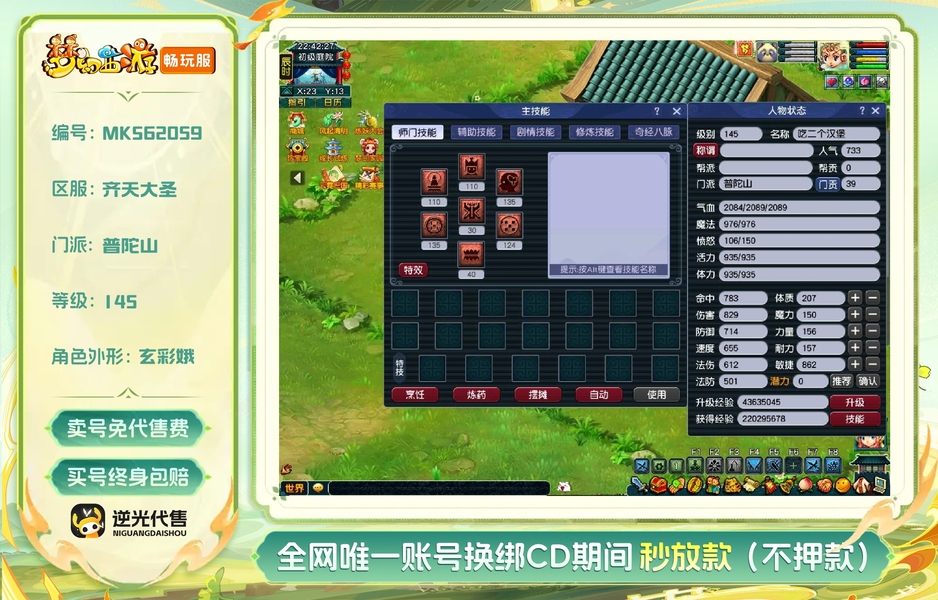 【MKS62059】 | 等级:145 | 普陀山 | 无换绑CD | 180天尊享特权 | 女 | 【逆光代售卖号0手续费】【买号找回永久包赔】