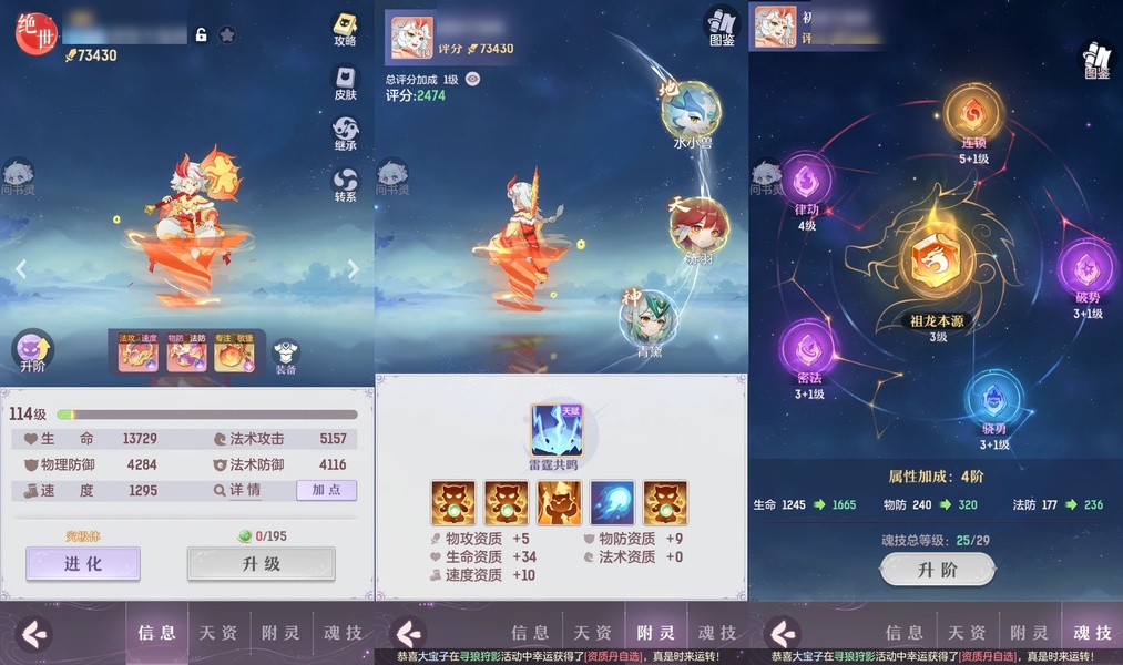 颜值:29535 | 等级:109 | 普陀 | 神兽数:4 | 法宝颜色统计:10红0蓝 | 总评分:445022 | 角色评分:100317 | 妖灵评分:226639 | 灵师评分:118066 | 倾天三 | 淬金曜蚀,织梦星海,乘波踏浪,山君现,清寒羽冽,灵鸢一梦,墨染尘烟,星河揽月,离火苍龙,九春韶华,玉兔月赏,火树银花,太初·云渺,哈?我当武器?,碎梦语情,炙烤大串,一刹雷鸣 | 蝶恋芳菲 | 乌蹄·照夜,太一驴,嘟嘟雪橇,吾皇·萌骑,蟹有钳,钱多多,七彩灵鲲,灵华引,星昀渡,比翼同舆,万海真君,罗帷七香车,蕴灵天剑,血蚀苍牙,浪起来,飞起来·壹号,负山海,北域霜枭,跃龙门,鸭与云游,喵小萌,马上到,飞天笔,飞龙在天,红莲·出尘,定乾坤·承影,兔球,风火乾坤,大荒之主,海月璃梦,贯日神君,玄夜星羚,祥云·虹光,焚天火凤,花将军,招财进喵,初弦瑶桂,乘风入梦,鼠鼠·星愿巫,狐心入梦,踏火焚夜,凤蝶·梦浮生,逍遥羊,柯冲冲 | 【买号找回永久包赔】