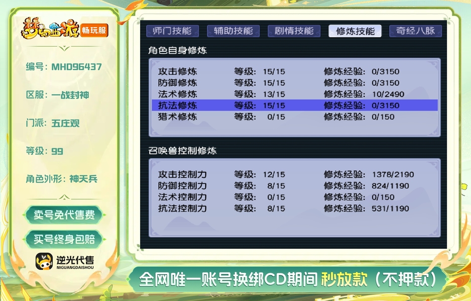 天阵,由于上班玩不了,便宜卖,满修,经验一直在拉满。带任务宝宝。买到就是赚,