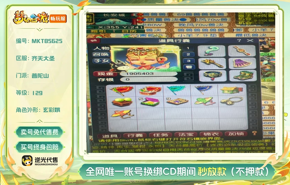 【MKT85625】 | 总经验:12万 | 等级:129 | 普陀山 | 无换绑CD | 超级绿通 | 女 | 【逆光代售卖号0手续费】【买号找回永久包赔】