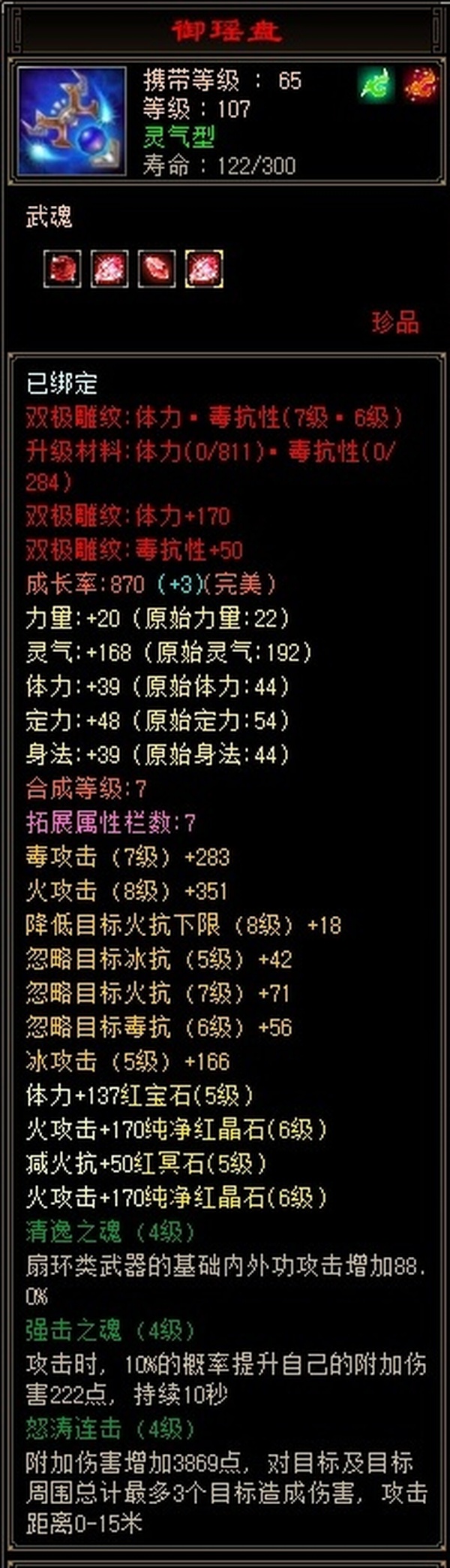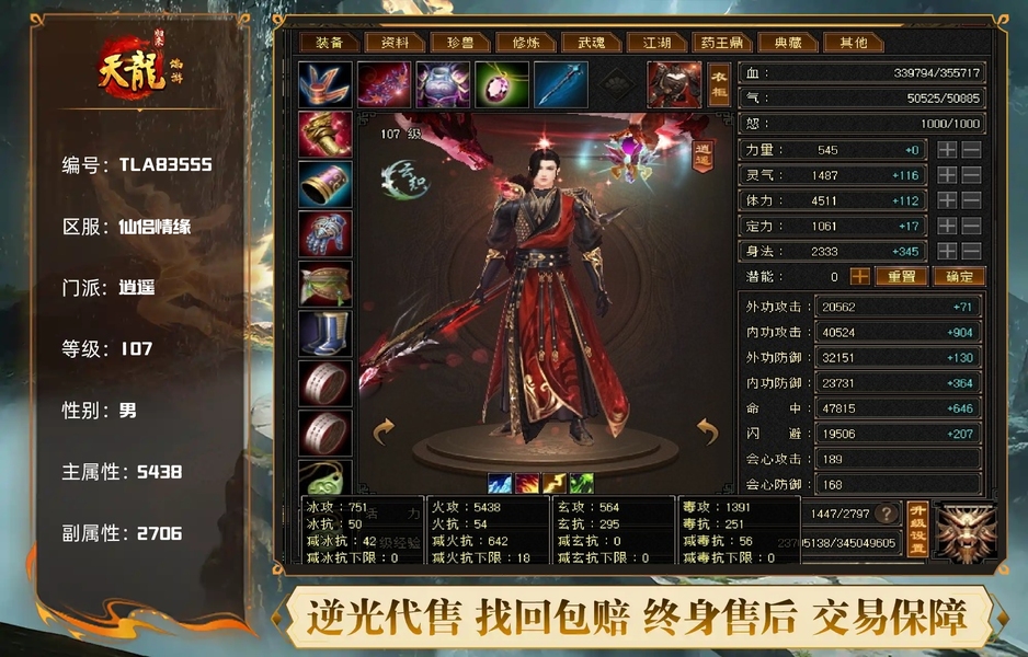 107级逍遥主属性5300,减抗650,多修,个人一手,没时间玩了