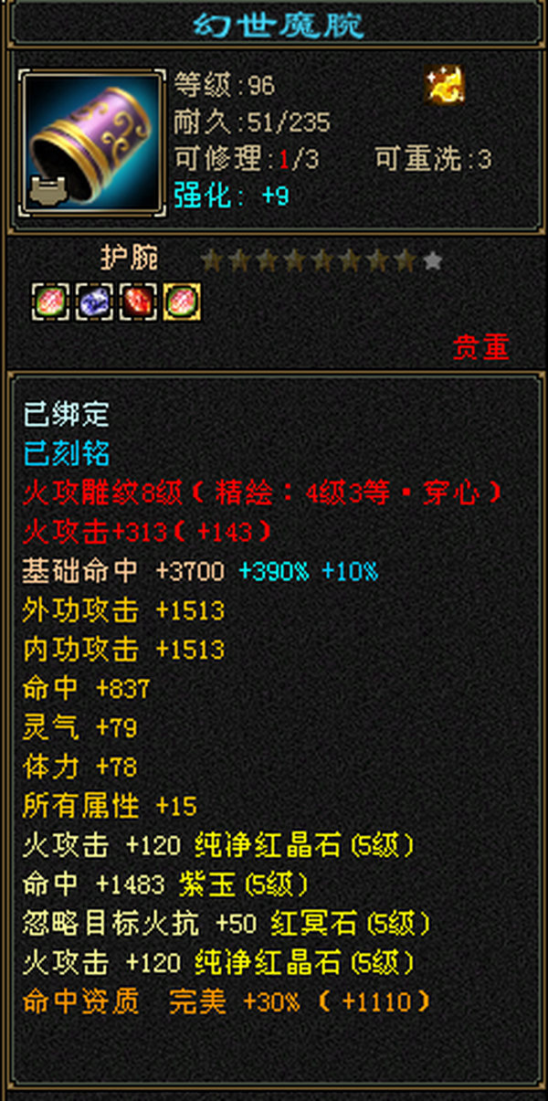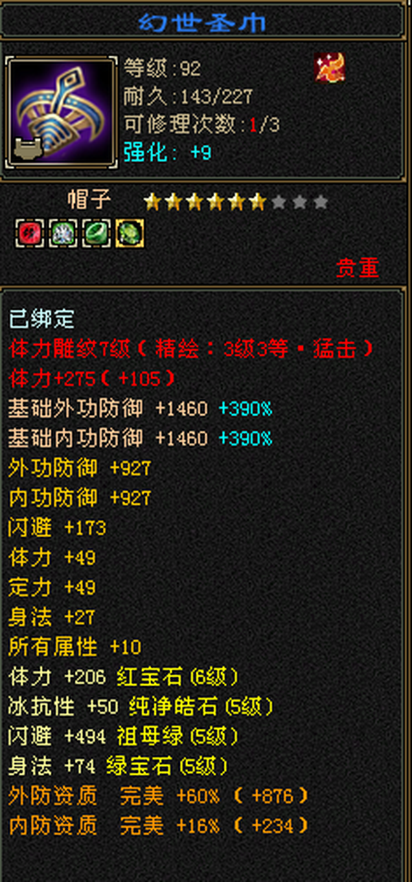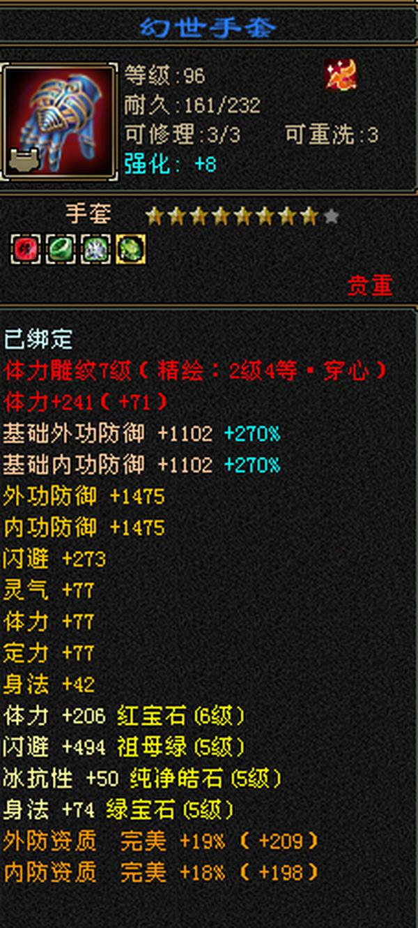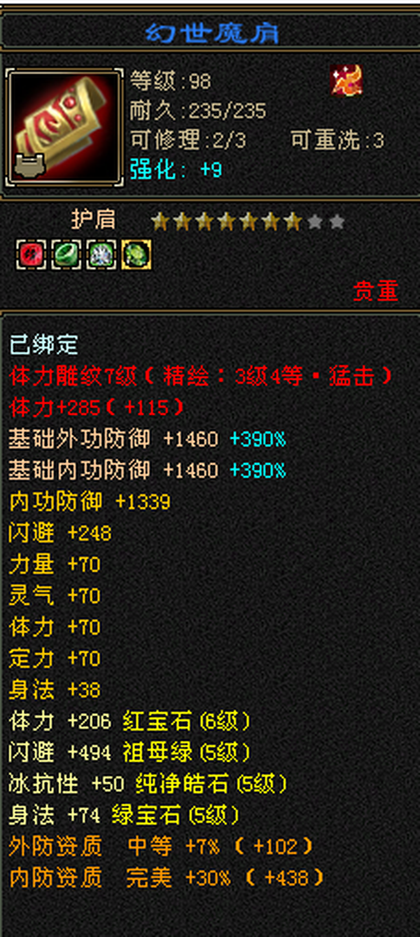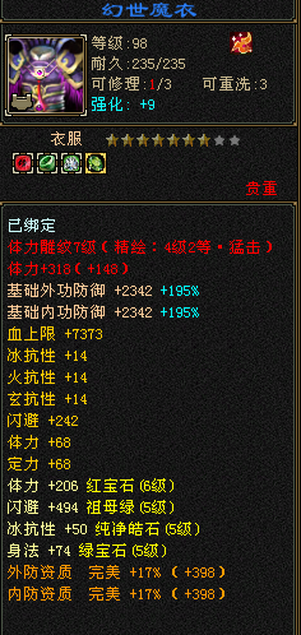 满6体5减。20件时装.红熊王.4把幻视.裸面板5999属性,吃了个5级精华,东西不拿走。