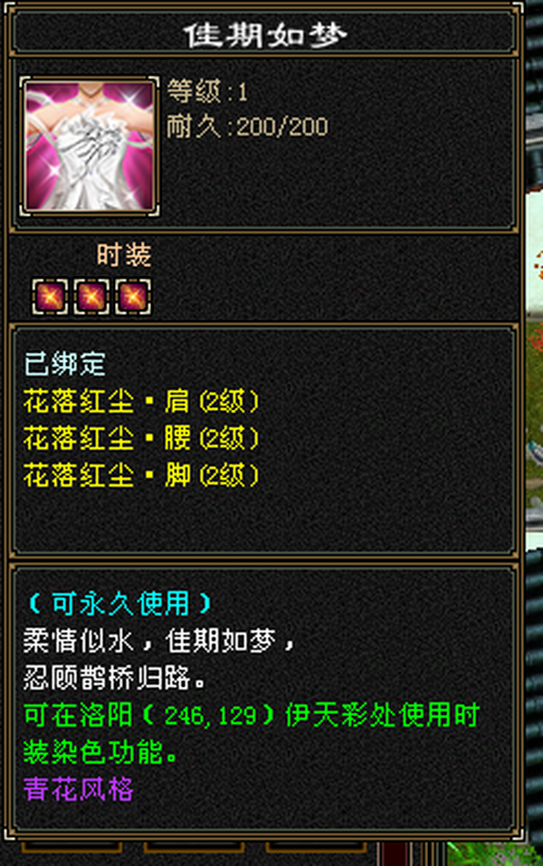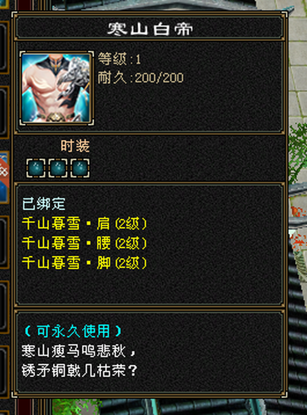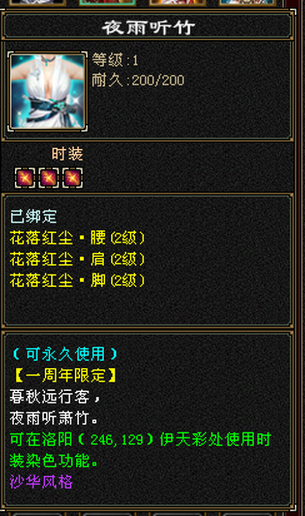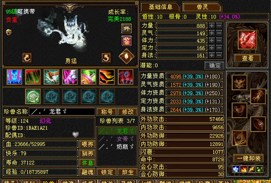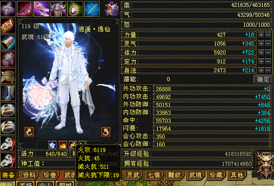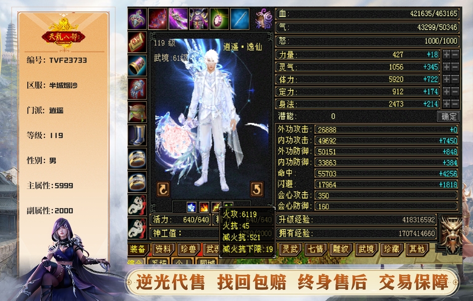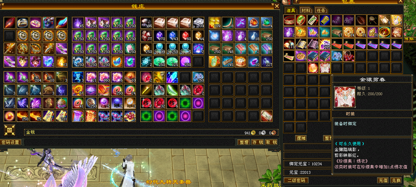 满6体5减。20件时装.红熊王.4把幻视.裸面板5999属性,吃了个5级精华,东西不拿走。