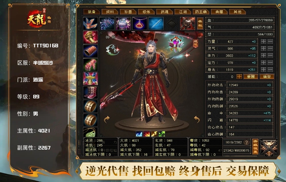 成品号,没时间玩了,满5代6 4减 天雕有两个,3修主属4000+ 副修2000+ 打架完全够用