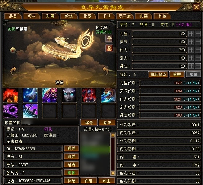 四属性暴力6级天龙,因时间原因惜售,自带改名卡,天雕基本满,剩下自己看细节,超值!
