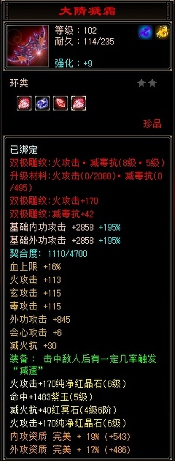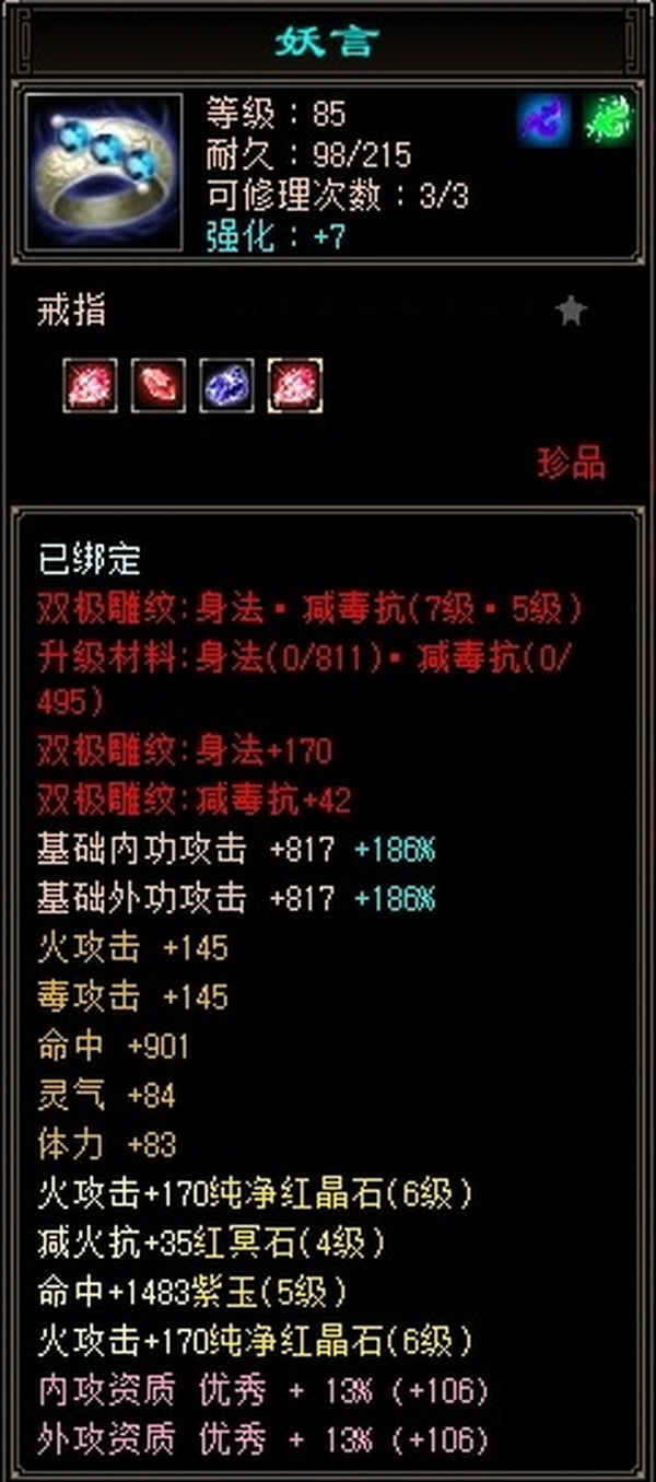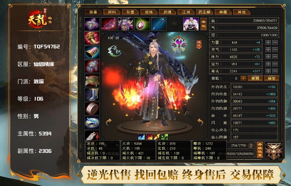 【TQF54762】 | 逍遥 | 等级:106 | 主属性:5394 | 副属性:2306 | 男 | 主火攻