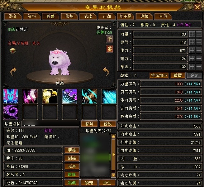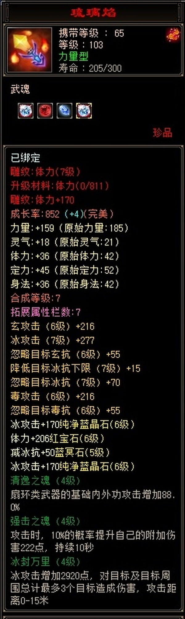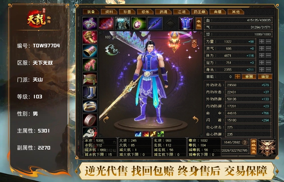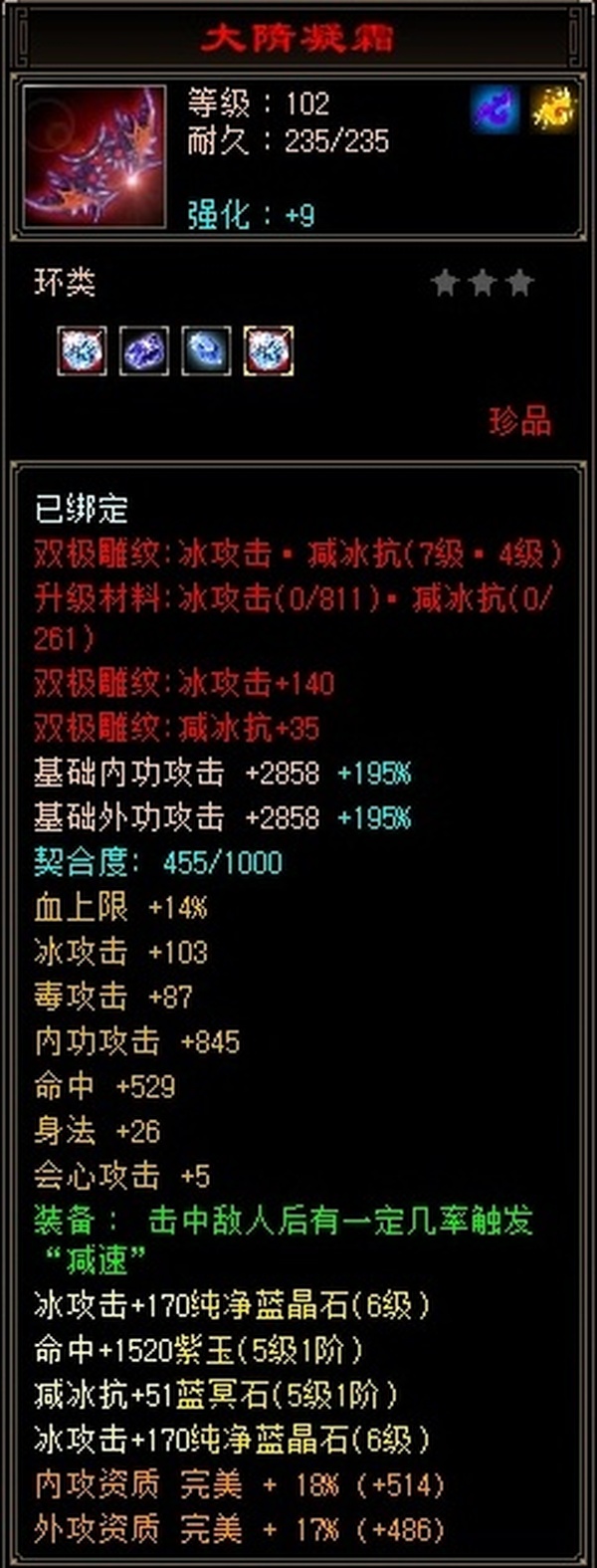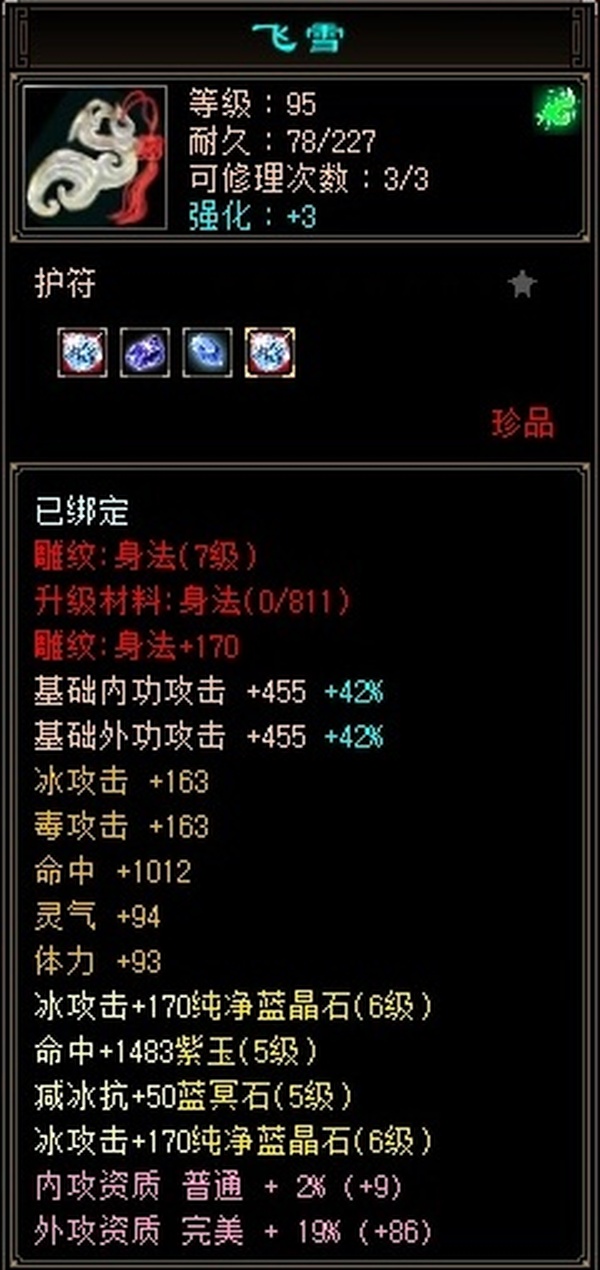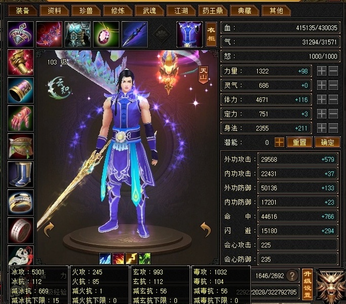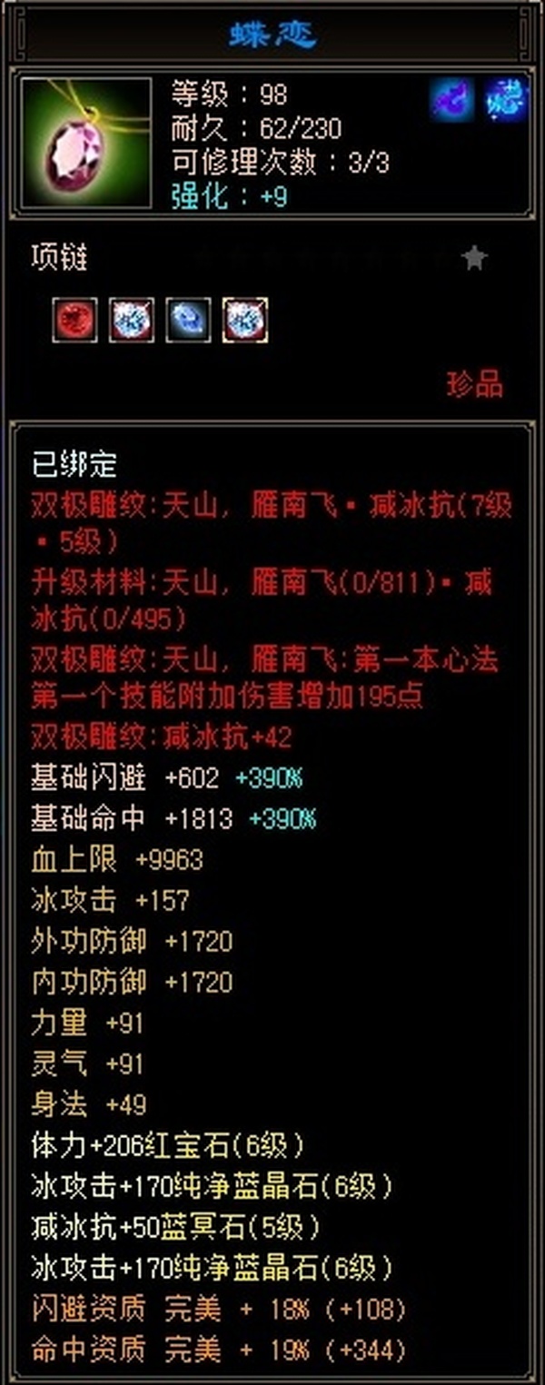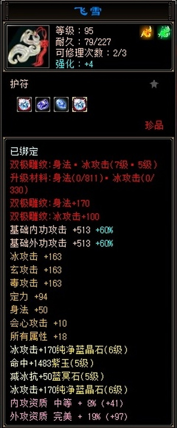 天山 | 等级:103 | 主属性:5301 | 副属性:2270 | 男 | 主冰攻