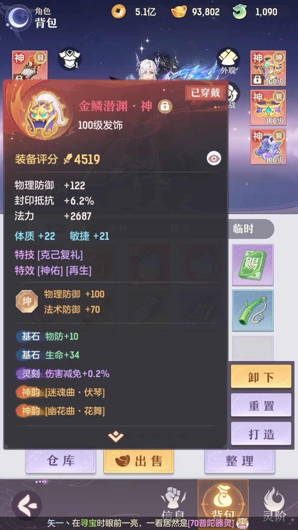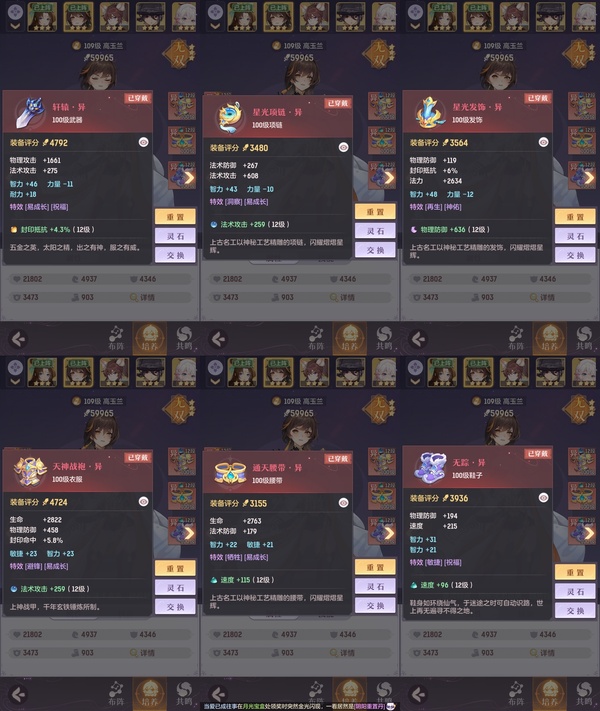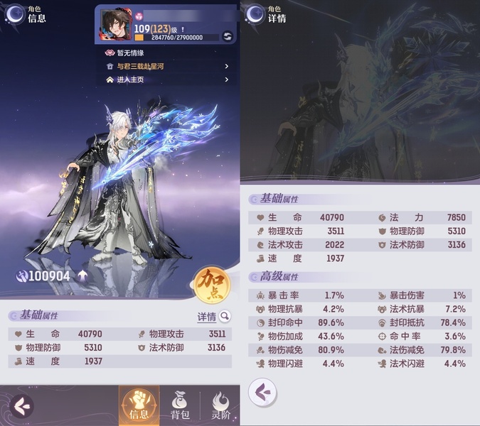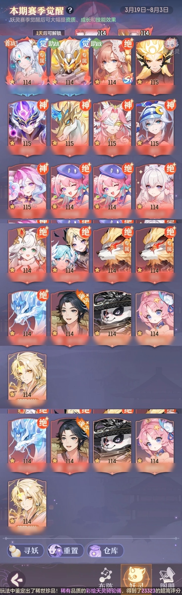 颜值:24393 | 等级:109 | 青丘 | 神兽数:6 | 法宝颜色统计:10红0蓝 | 总评分:451004 | 角色评分:100904 | 妖灵评分:230502 | 灵师评分:119598 | 倾天三 | 淬金曜蚀,织梦星海,乘波踏浪,山君现,清寒羽冽,灵鸢一梦,墨染尘烟,星河揽月,离火苍龙,九春韶华,玉兔月赏,火树银花,哈?我当武器?,碎梦语情,炙烤大串,一刹雷鸣 | 蝶恋芳菲,火神·赤曦 | 乌蹄·照夜,祥云,蟹有钳,钱多多,气球派对,灵华引,星昀渡,比翼同舆,万海真君,罗帷七香车,云心漫游,血蚀苍牙,浪起来,飞起来·壹号,负山海,北域霜枭,跃龙门,鸭与云游,飞天笔,飞龙在天,红莲·出尘,兔球,风火乾坤,大荒之主,海月璃梦,贯日神君,通明心剑,焚天火凤,花将军,招财进喵,乘风入梦,鼠鼠·星愿巫,狐心入梦,风驰电掣,踏火焚夜,凤蝶·梦浮生,柯冲冲 | 【买号找回永久包赔】