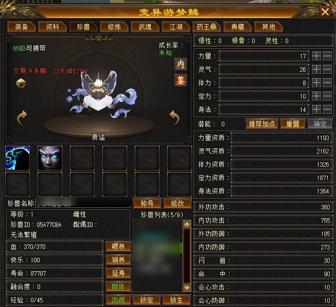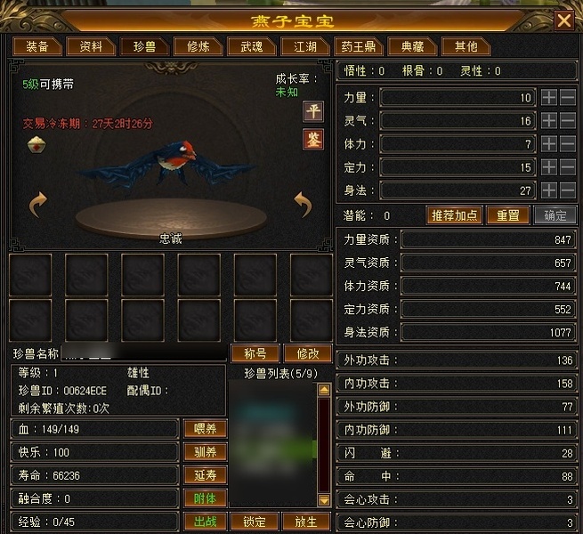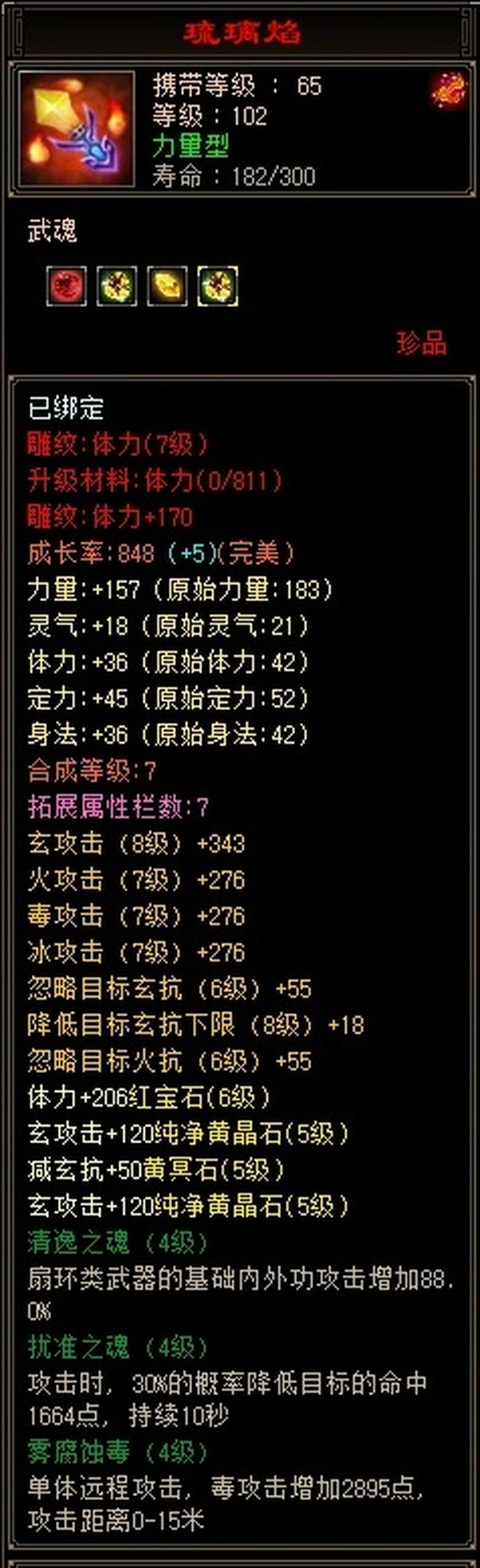 6属6体满5减 7星神器带天雕 中完美武魂8下限8攻击。去新区了一口价